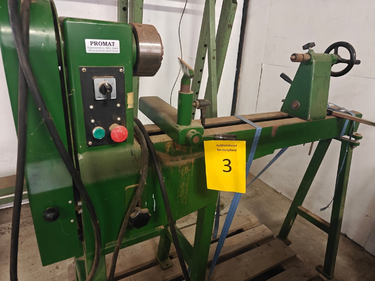 Trædrejebænk. Mrk: Promat. Evt. øvrige effekter på fotos medfølger ikke.