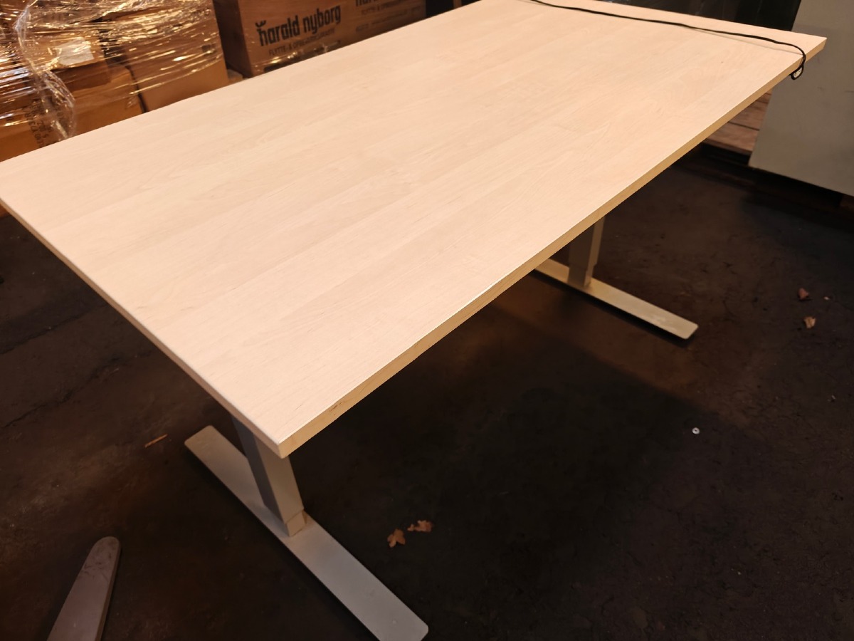 2 Hæve-/sænke skriveborde. Pulverlakerede stel. Mål: 1 stk: 160 x 80 cm. 1 stk: 140 x 80 cm