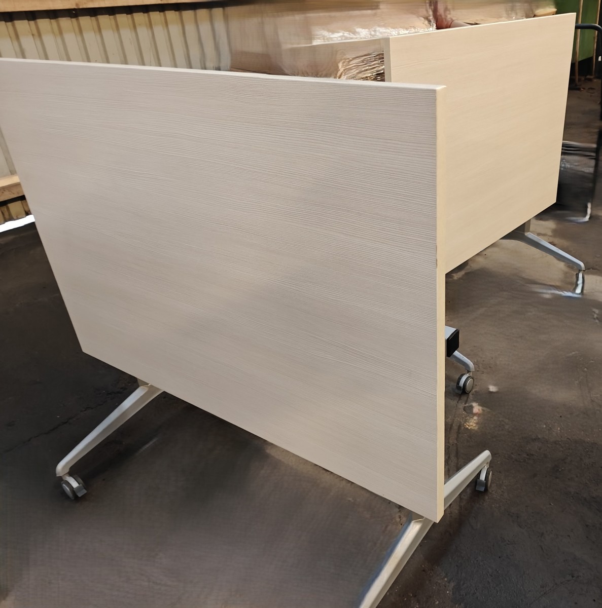 "2 Mobile vippe-/flipborde. Mrk: Lomax. På hjul, som alle er m/låsefunktion. Ahorn melamin bordplade. Alulakeret stålstel. Greb under bordplade for let håndtering/flytning. Mål: L: 120 cm. B: 80 cm. H: 74 cm. Brugte. Evt. øvrige effekter på fotos medfølger ikke."