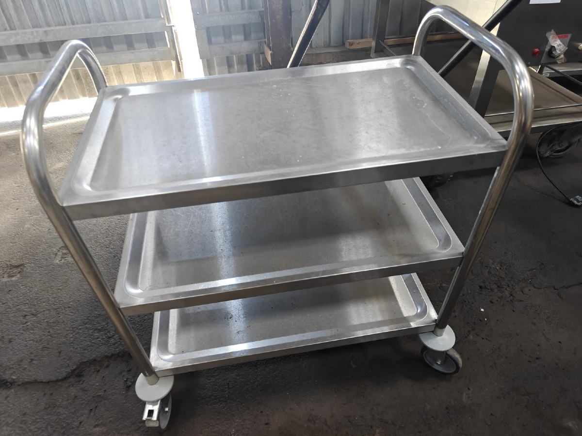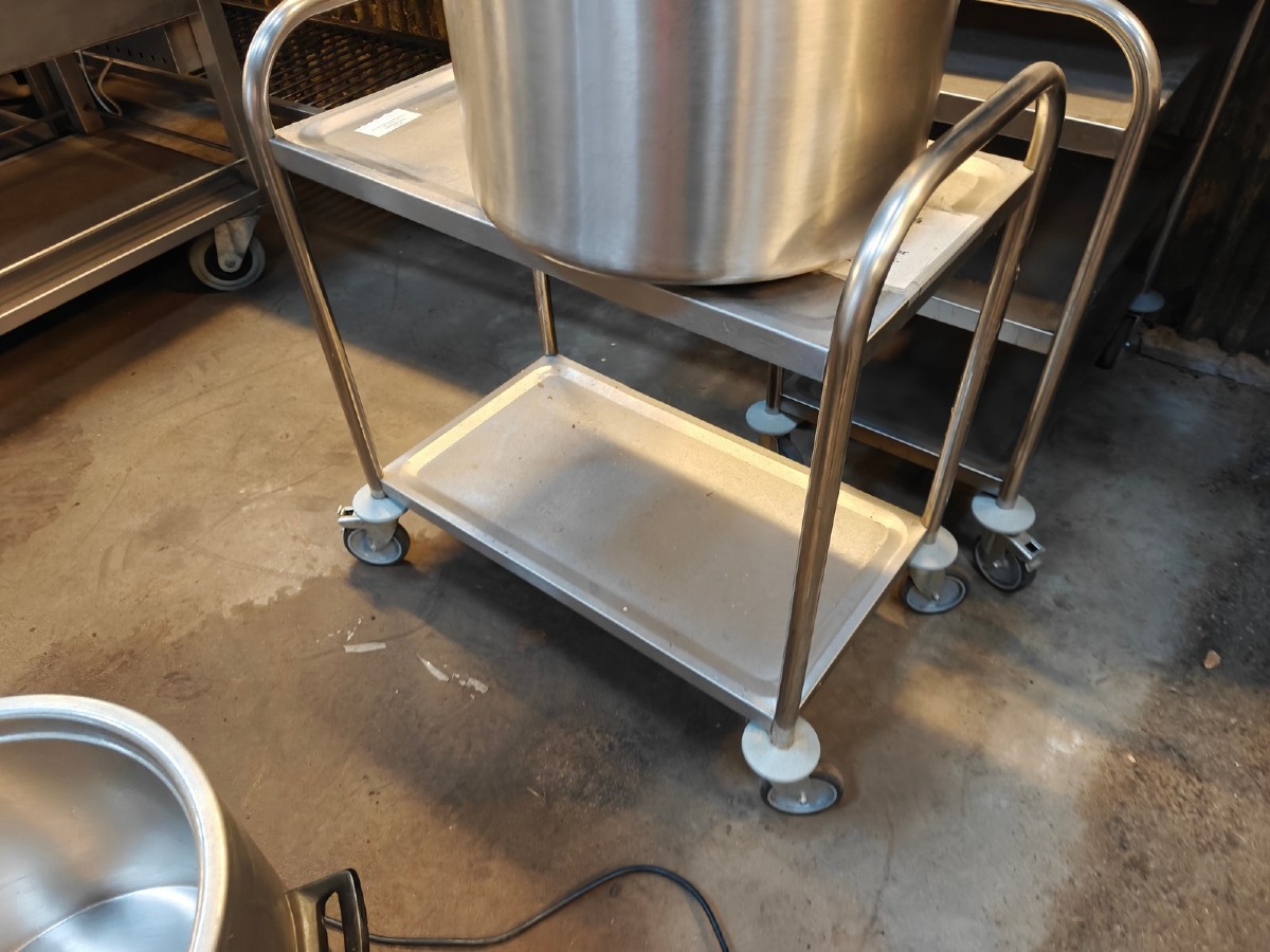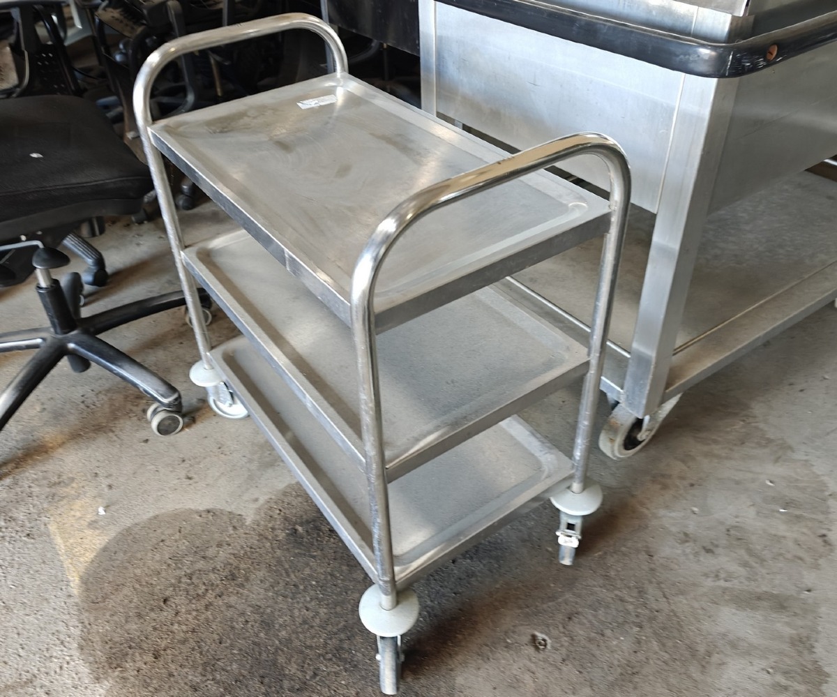 "3 Rullevogne i rustfrit stål. Mrk: KM KongaMek -your workmate. Hjul med låsefunktion. Brugte. Evt. øvrige effekter på fotos medfølger ikke."