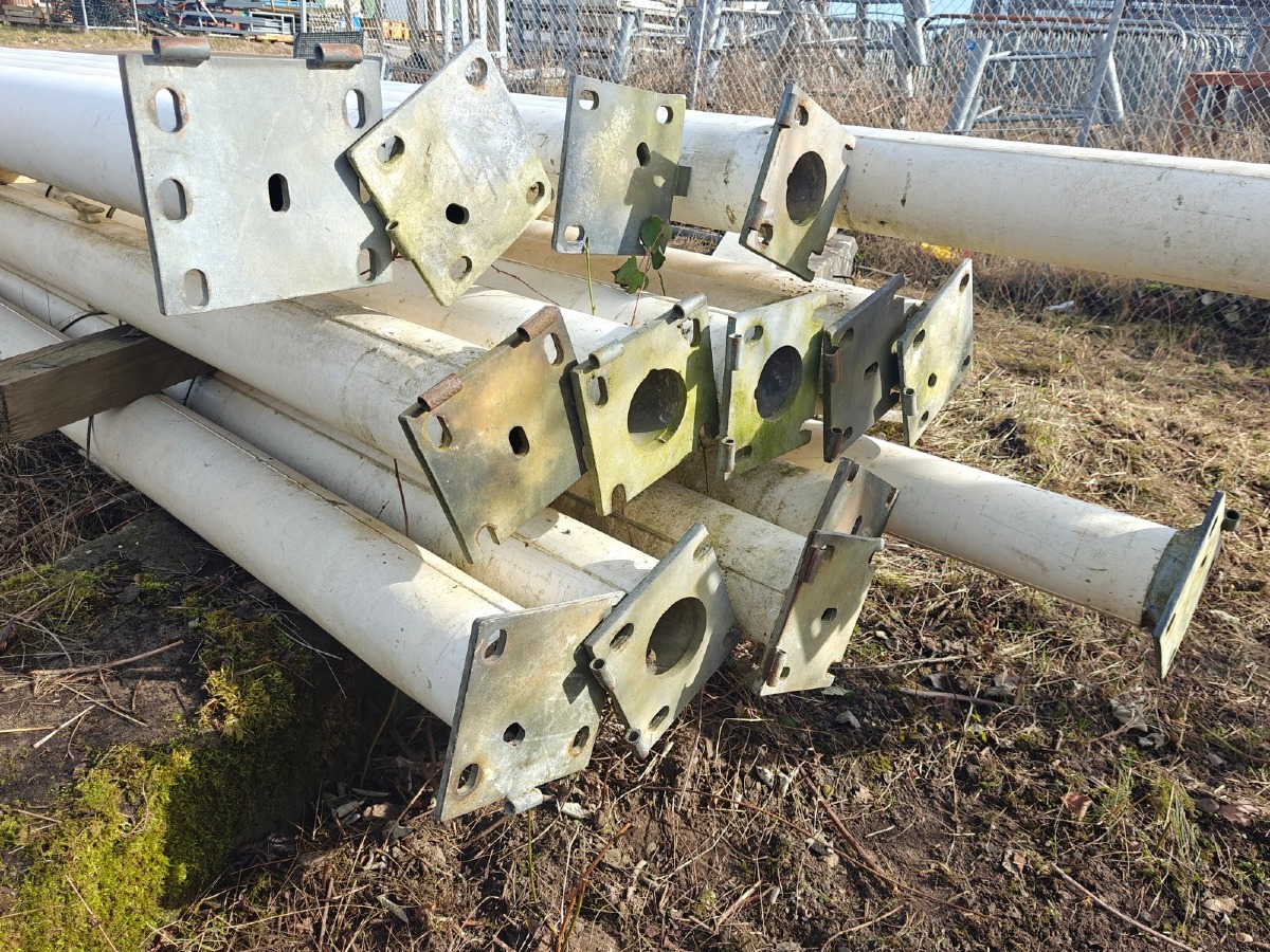 Glasfiber flagstang t/erhverv. 14 m. Mrk: VM Original. Påsat vippe-/ monteringsbeslag. Mål: Længde: ca 14 m. Brugt. Flagstængerne har forskellige brugsspor og kan være med/uden line & knopper. Der bydes på 1 af de viste flagstænger på billederne og de udleveres som 'plukkevarer'/efter 'først-til-mølle'princippet.