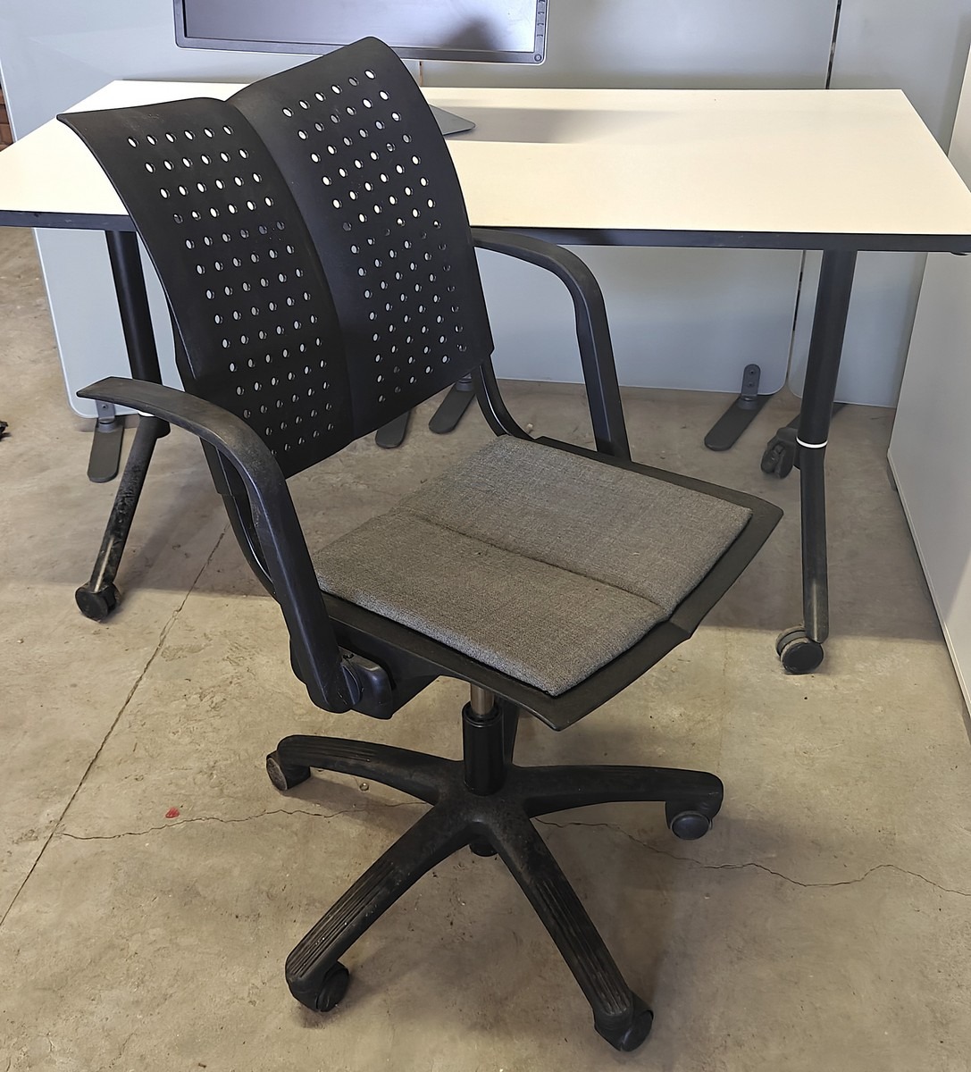 "HÅG kontorstol. Model: Conventio Wing. 9822. HÅG inBalance teknologi. Polstret sæde (gråmeleret), hvor betræk kan afmonteres og maskinvaskes. Letvægtsstol på hjul og drejesokkel. Med armlæn. Plastryg. Matsort stel. Siddehøjde: 36.5-51.1 cm. Produceret i Norge. Brugt. Evt. øvrige effekter på fotos medfølger ikke."