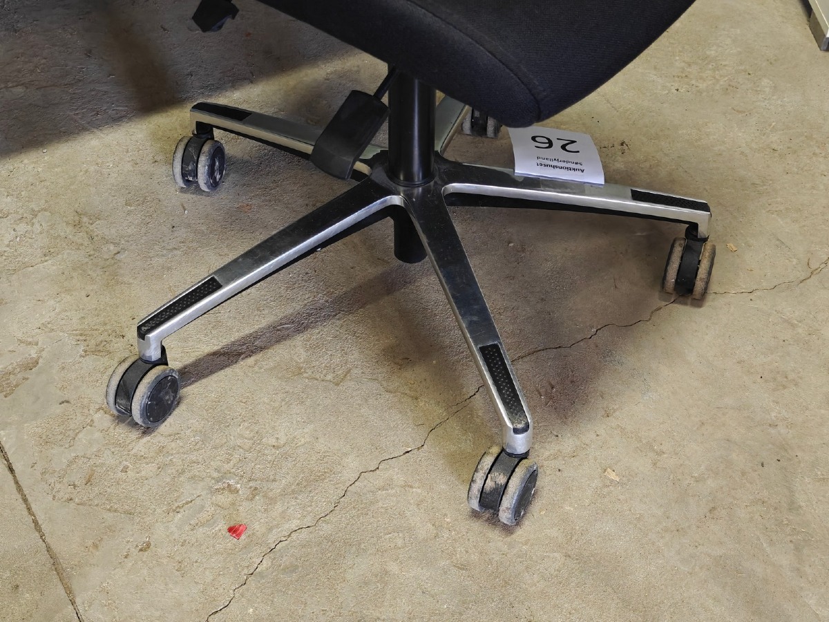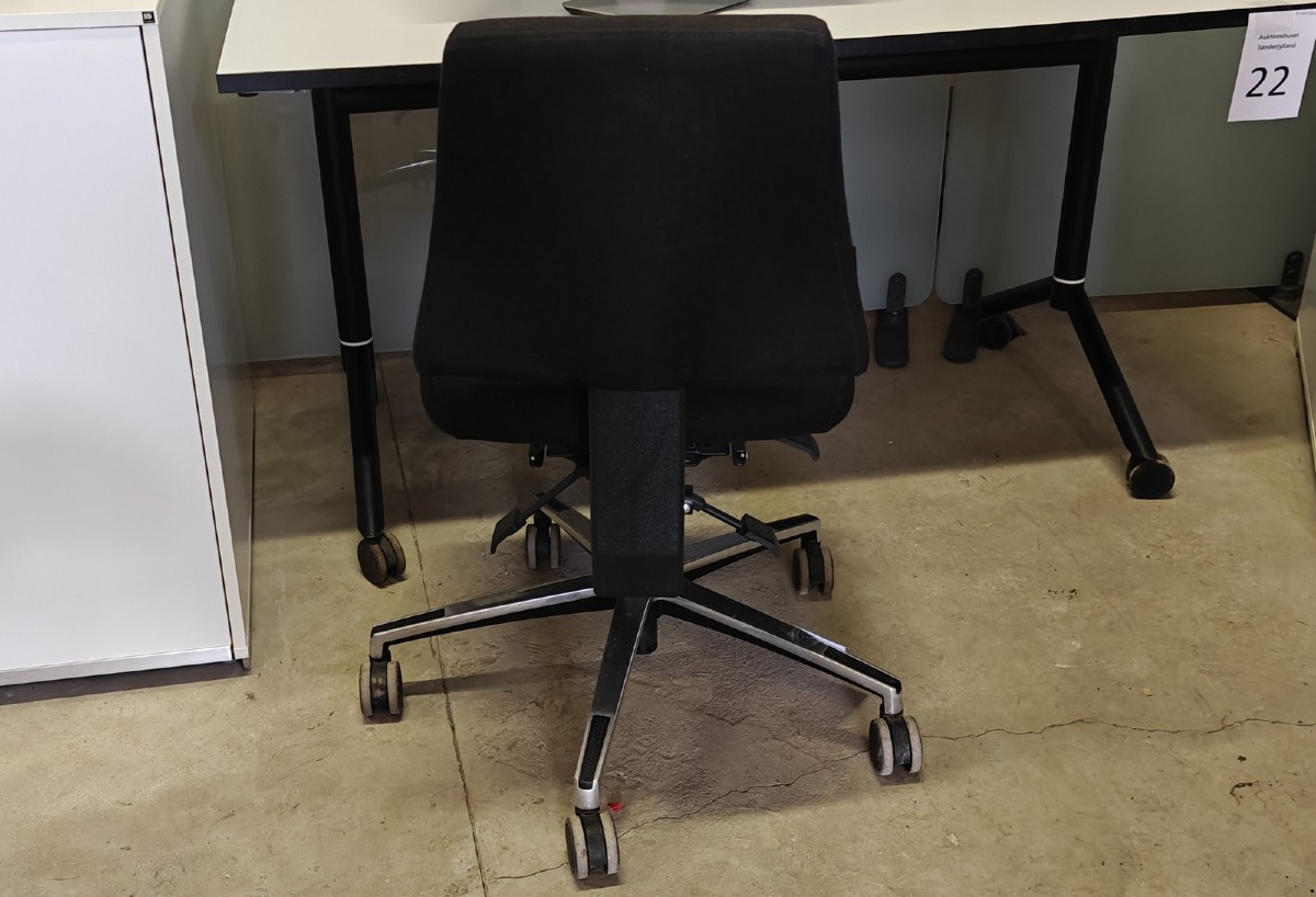 "Kontorstol. Mrk: DUBA B8. Sort. Polstret sæde og ryg. Alm. brugsspor. Evt øvrige effekter på fotos medfølger ikke."