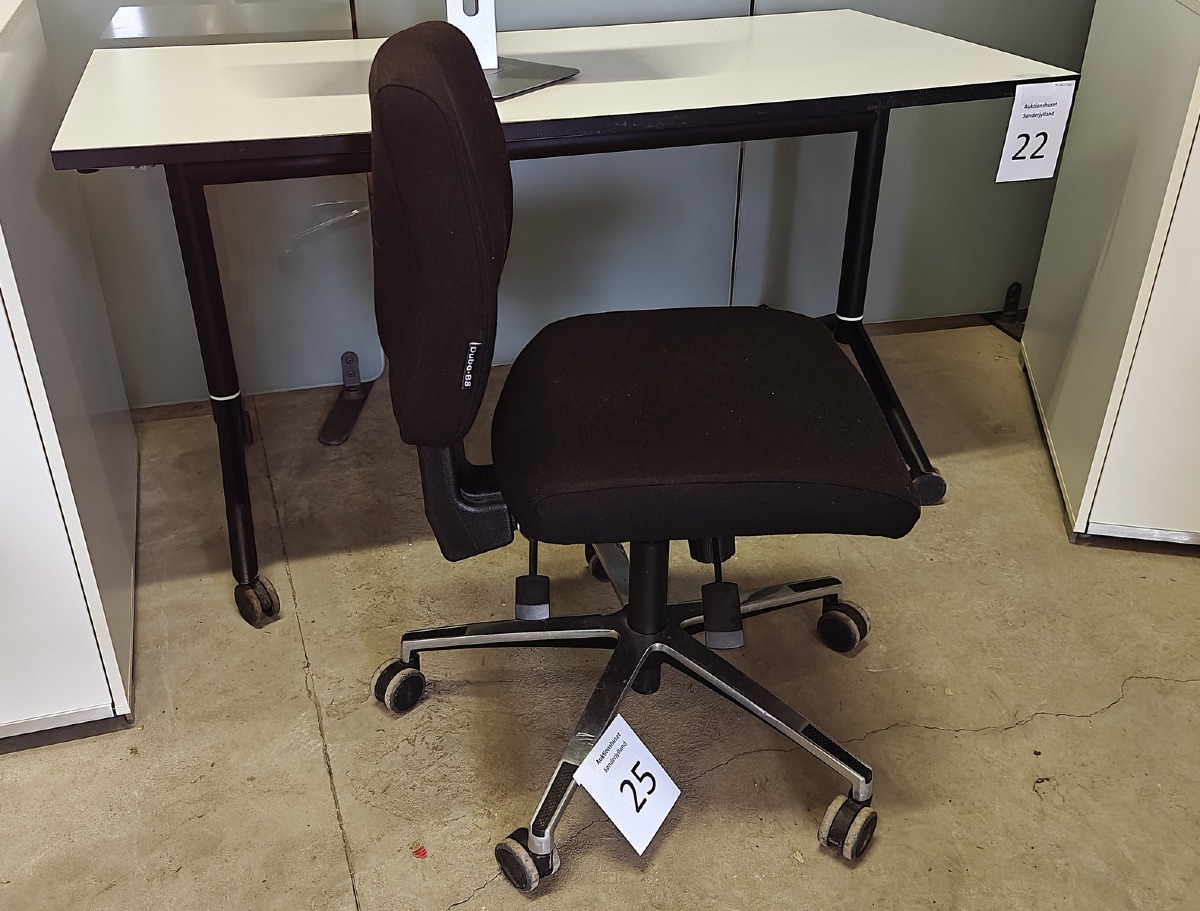 "Kontorstol. Mrk: DUBA B8. Sort. Polstret sæde og ryg. Alm. brugsspor. Evt øvrige effekter på fotos medfølger ikke."