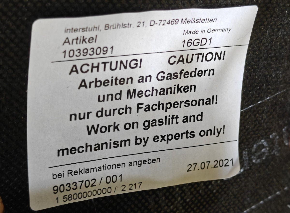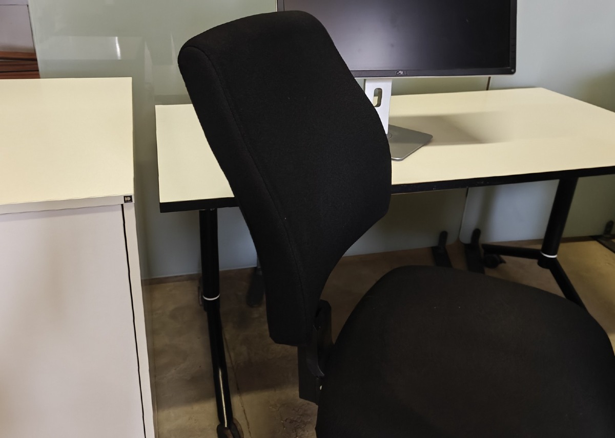 "Kontorstol. Mrk: Interstuhl. Model: 16GD1. Sort. Polstret sæde og ryg. Høj ryg. Alm. brugsspor. Evt øvrige effekter på fotos medfølger ikke."