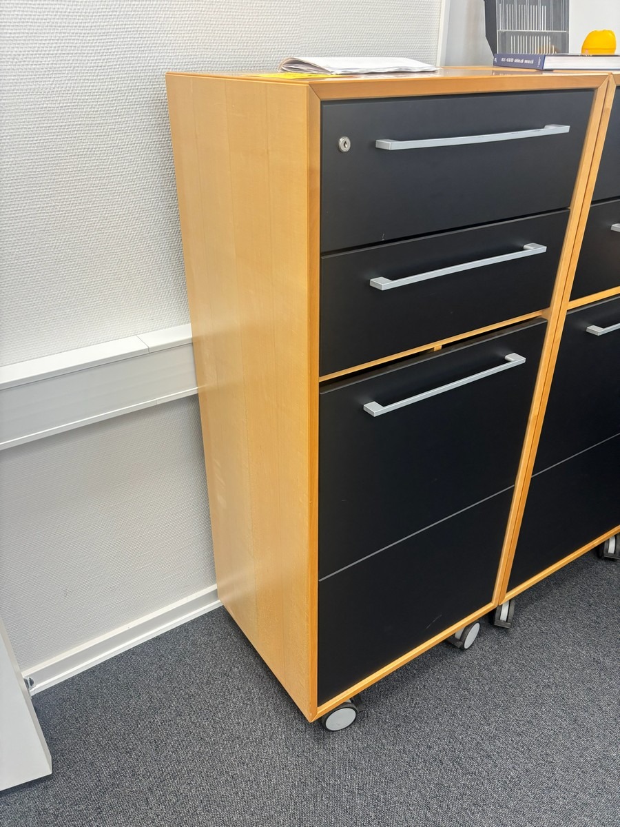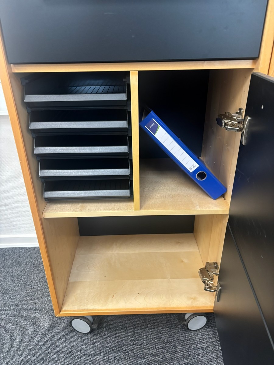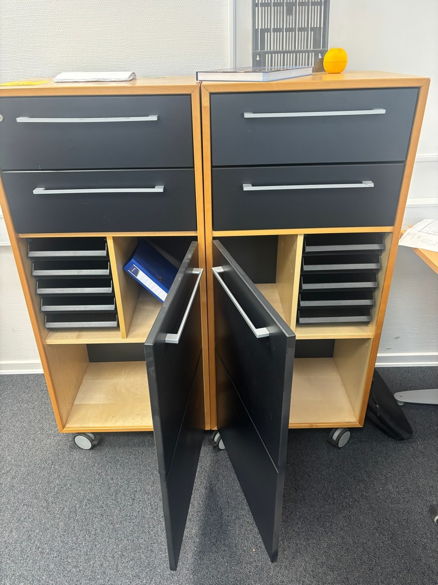 2 stk. mobile skuffemoduler med skuffer og skab i kombination. Uden indhold. Måler: 42 x 57 x 127 cm . Oprydning fra virksomhed