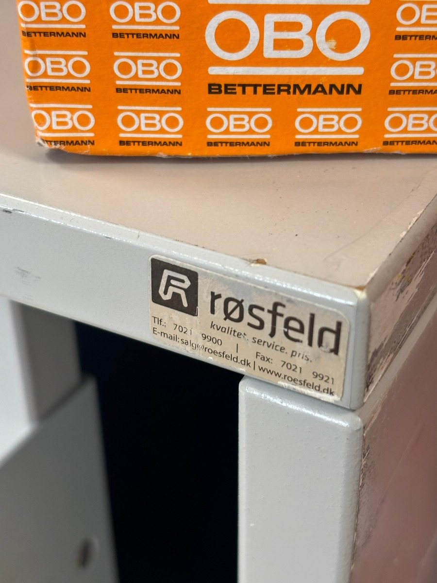2 stk. Opbevaringsskabe fra Dencon Røsfeld (Uden indhold - de bliver tømt inden udlevering). Hver modul måler : 160 x 47 x 80 cm. Oprydning fra virksomhed