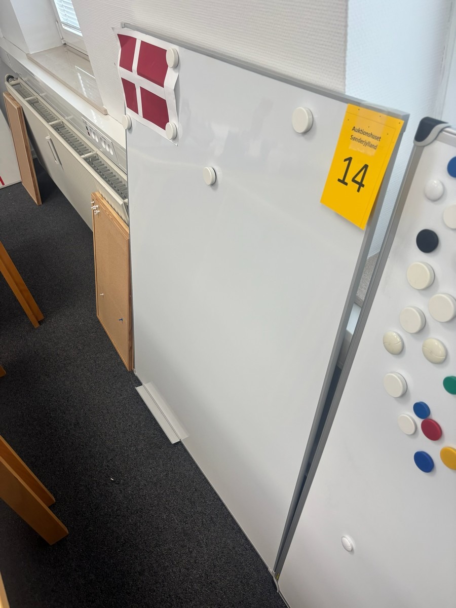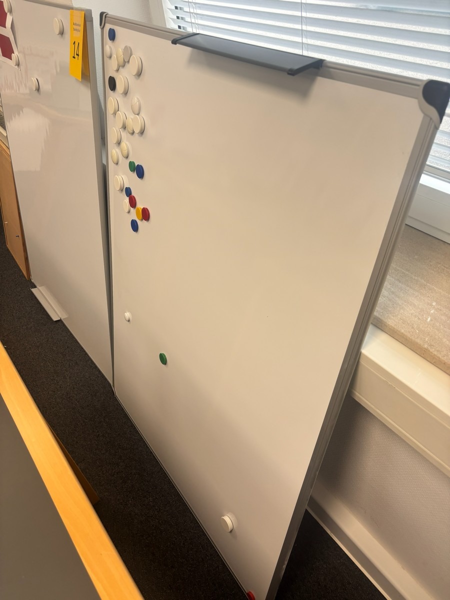 2 stk. Whiteboards, samt 2 stk. mindre opslags tavler. Måler : 90 x 120 og 63 x 40 cm. . Oprydning fra virksomhed
