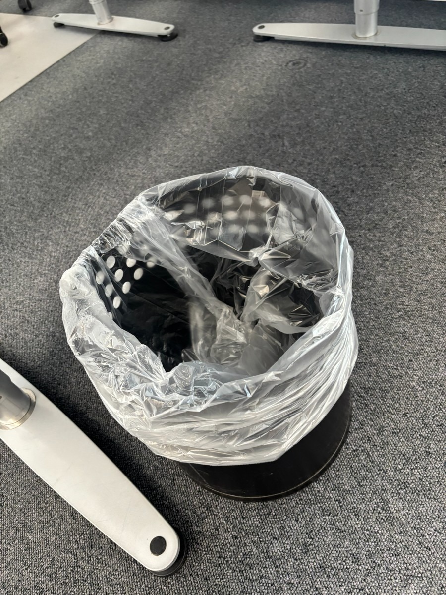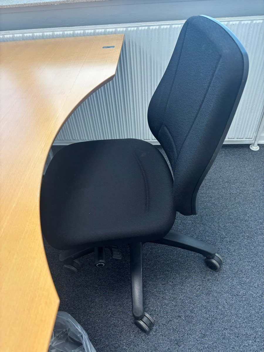 Hæve-/sænkebord med kontorstol & skraldespand. Måler: 160 x 90 cm. Oprydning fra virksomhed