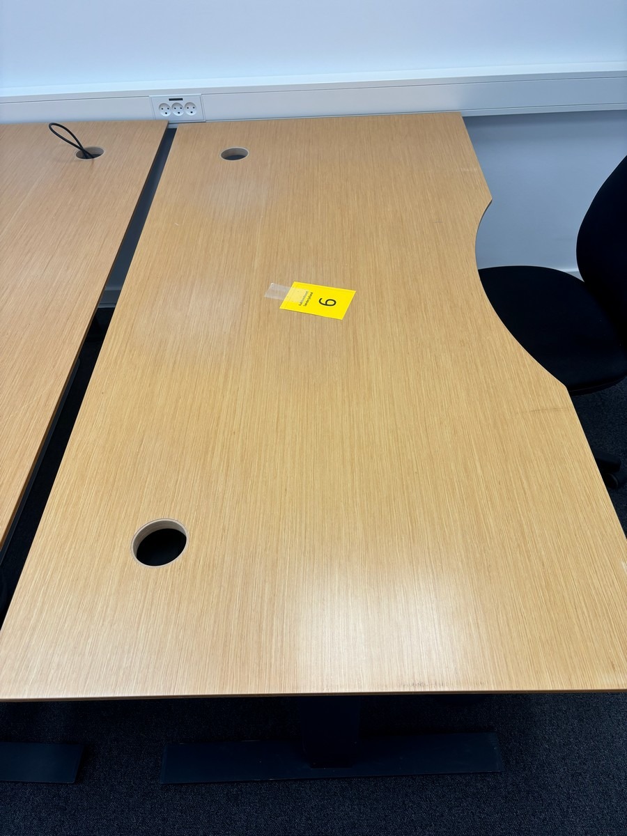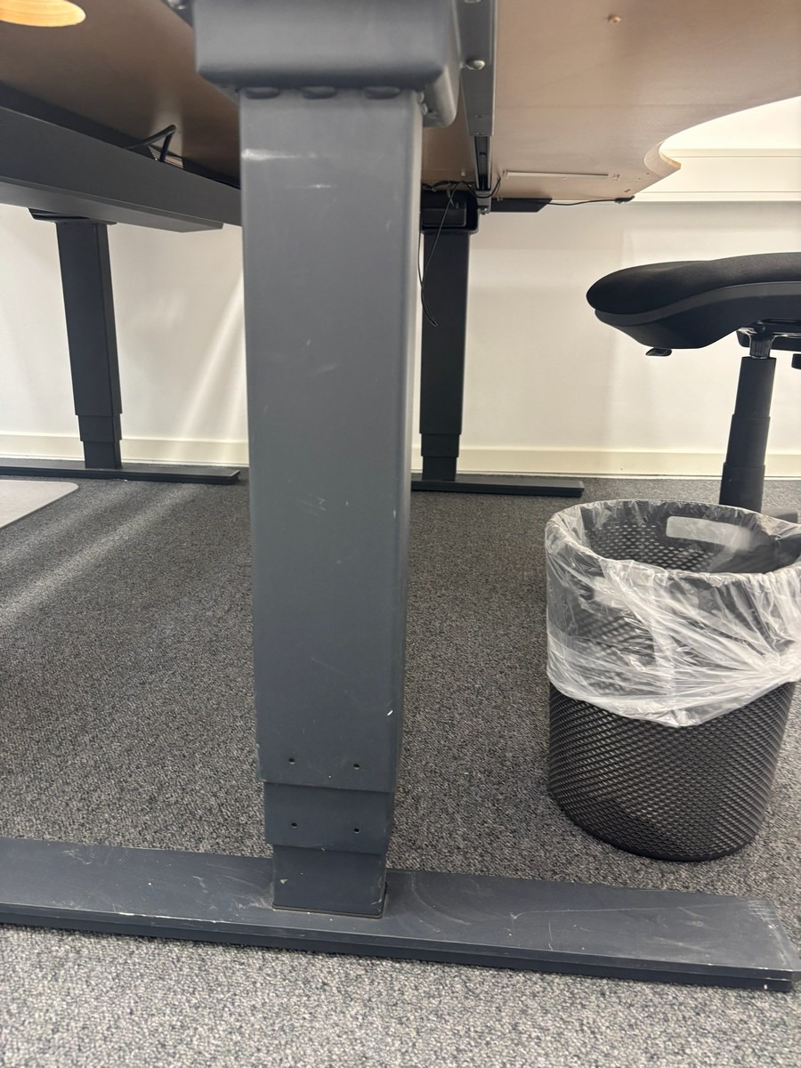Hæve-/sænkebord med kontorstol & skraldespand. Oprydning fra virksomhed
