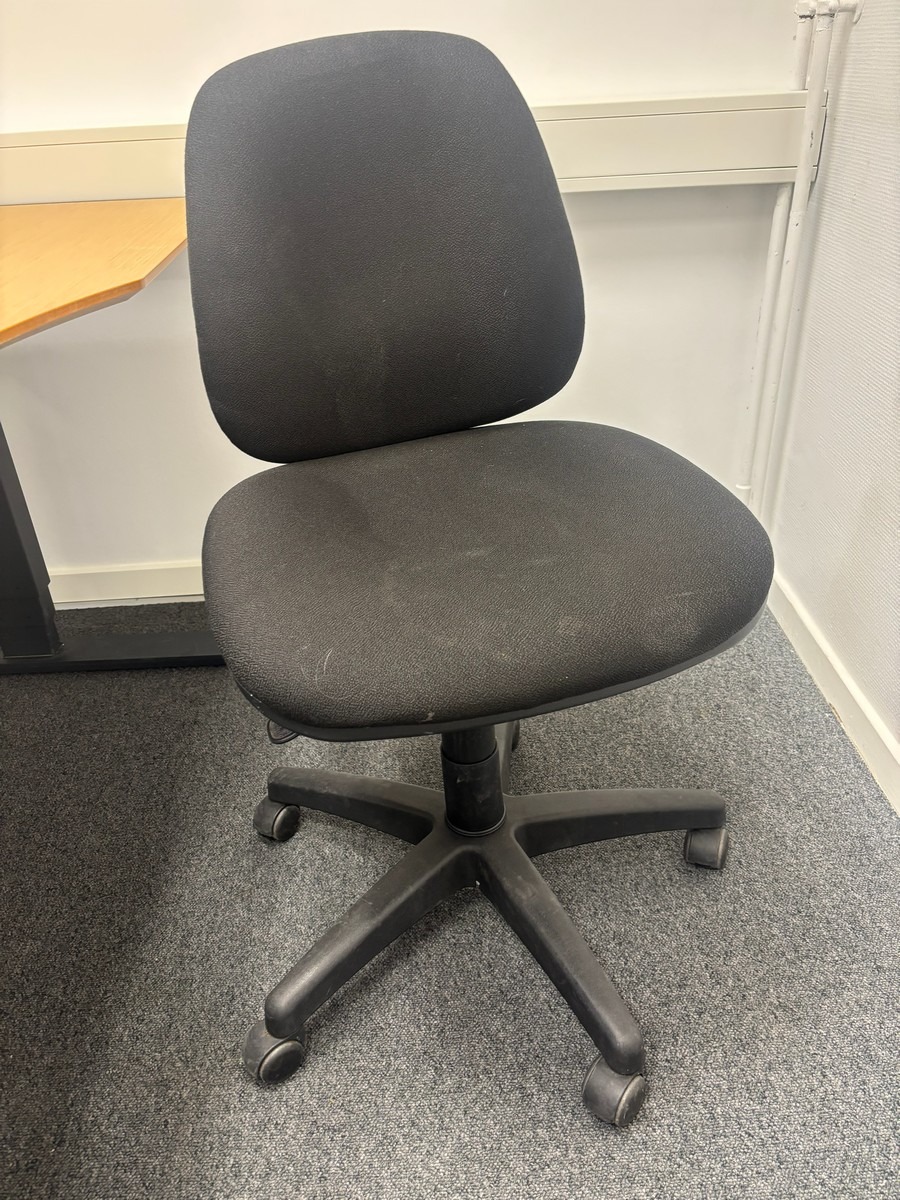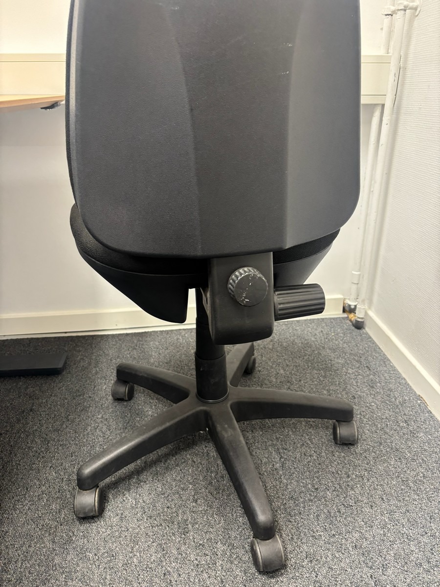 Hæve-/sænkebord med kontorstol & skraldespand