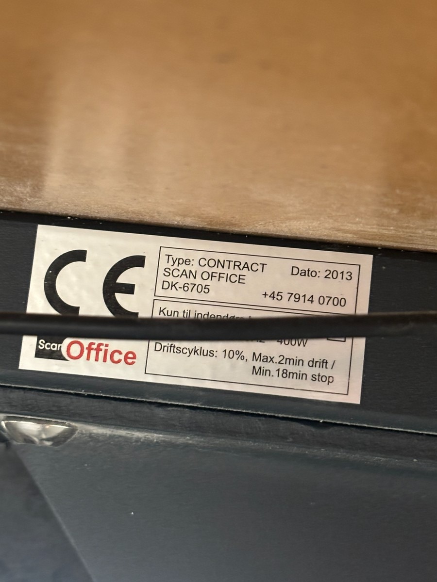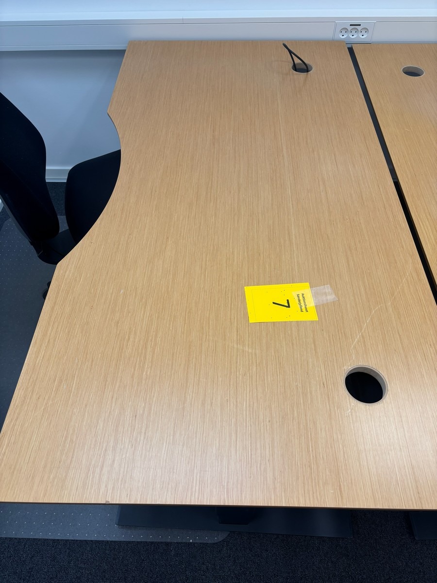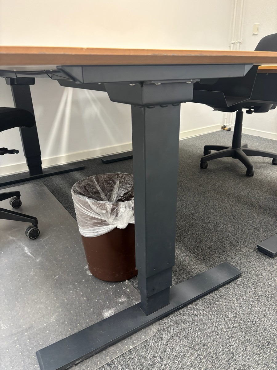 Hæve-/sænkebord med kontorstol, underlag & skraldespand. Oprydning fra virksomhed