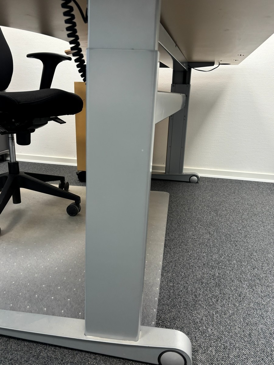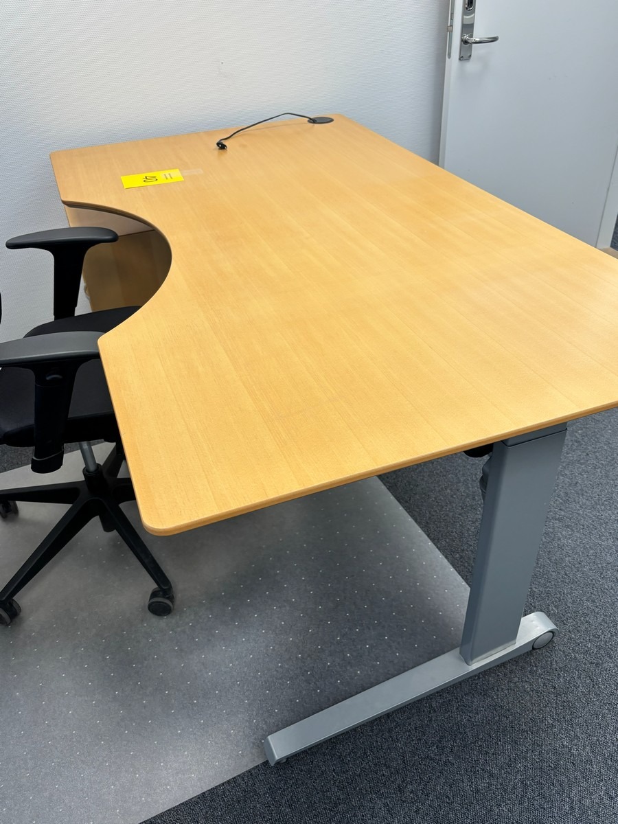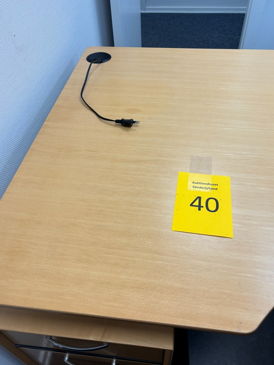 Hæve-/sænkebord med kontorstol, underlag & underskuffe. Oprydning fra virksomhed