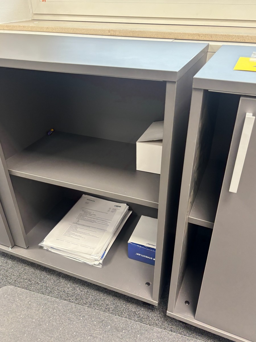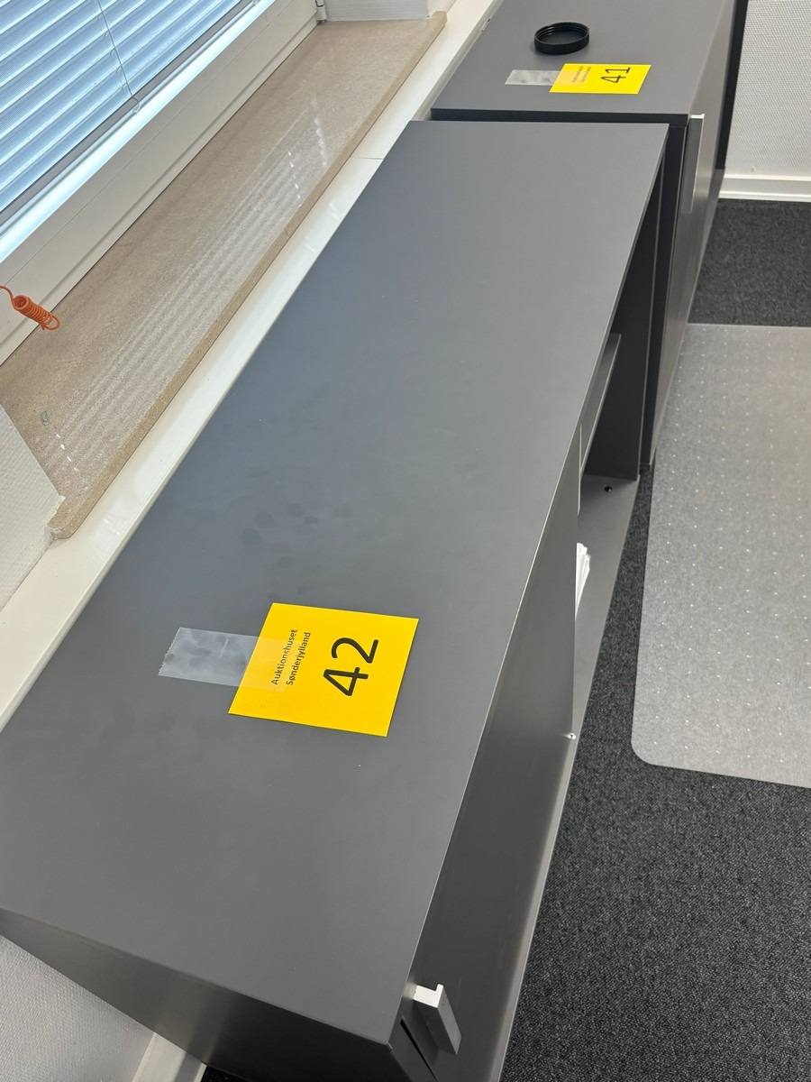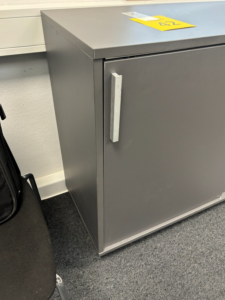 Lav opbevaringsskab i grå – moderne design.120 x 40 x 80 cm. Oprydning fra virksomhed