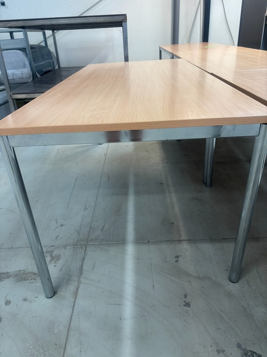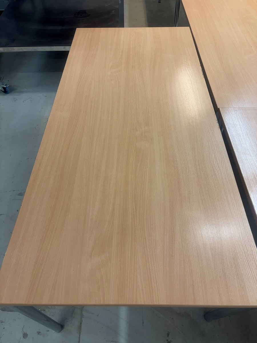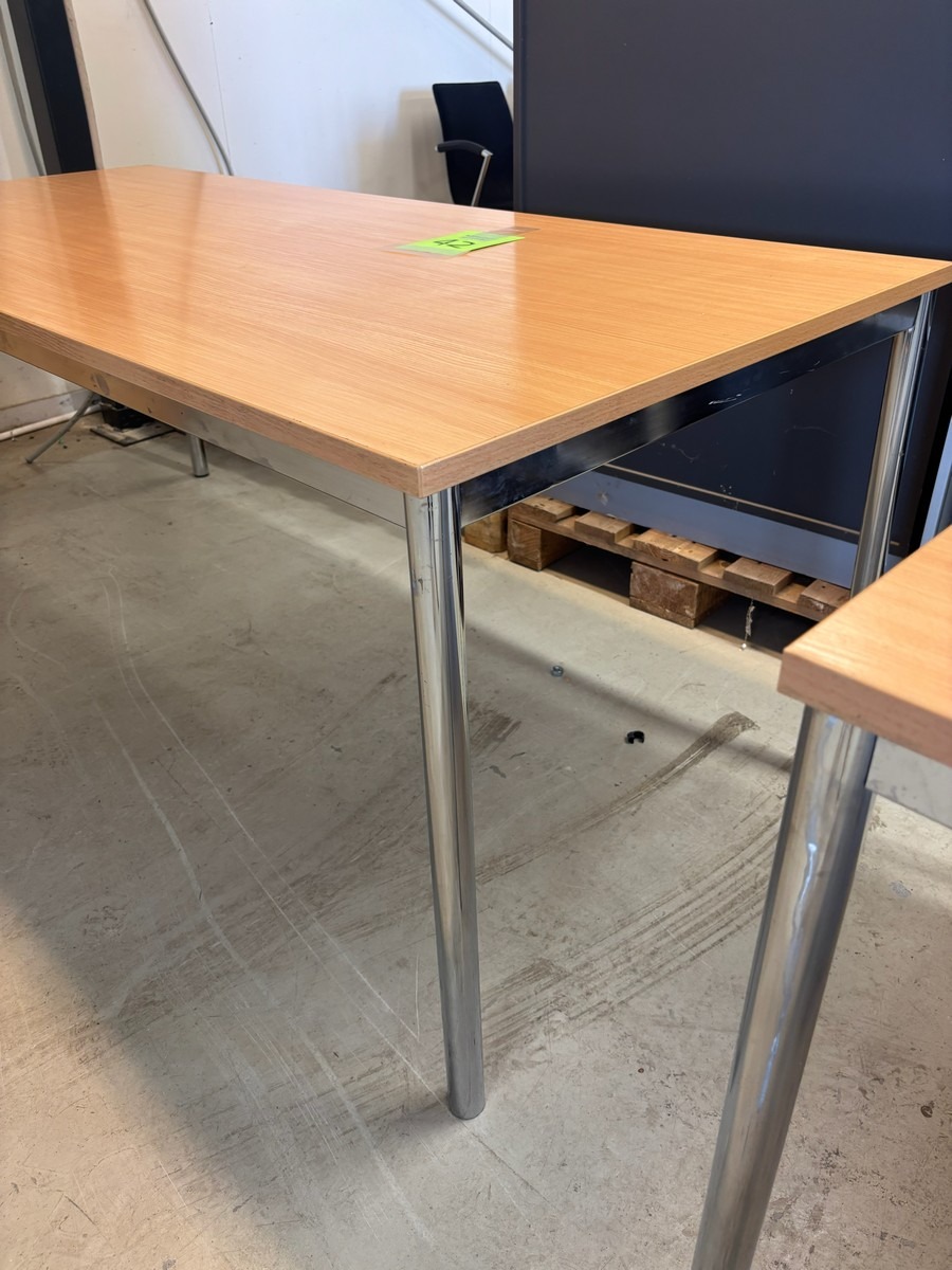 2 stk. Konferencebord / mødebord i bøgelook med kromben. Måler: 180 x 80 x 72cm. Brugt med brugsspor. Oprydning fra virksomhed