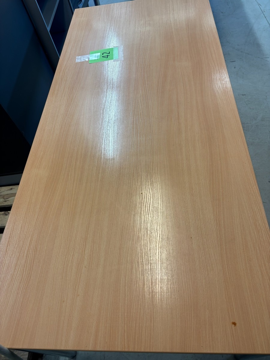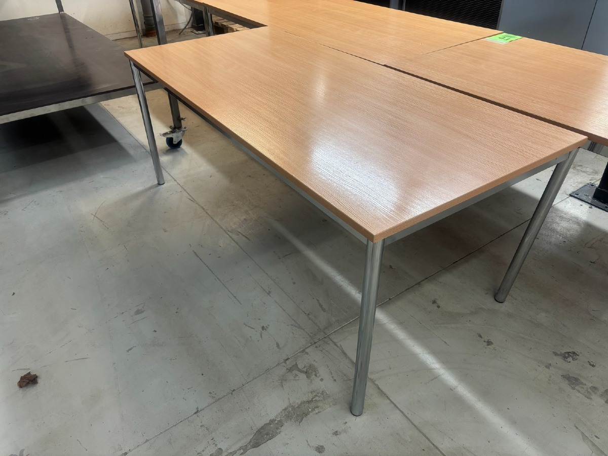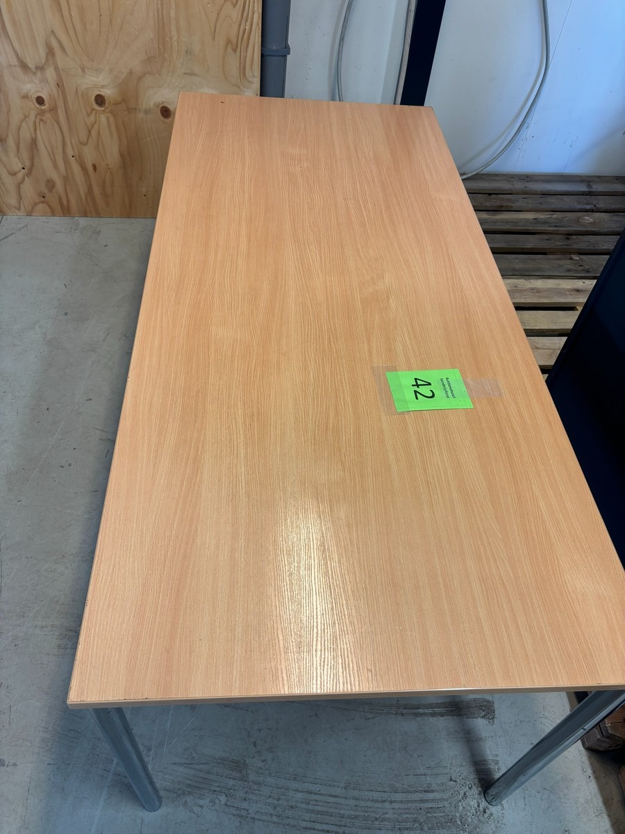 2 stk. Konferencebord / mødebord i bøgelook med kromben. Måler: 180 x 80 x 72cm. Brugt med brugsspor. Oprydning fra virksomhed