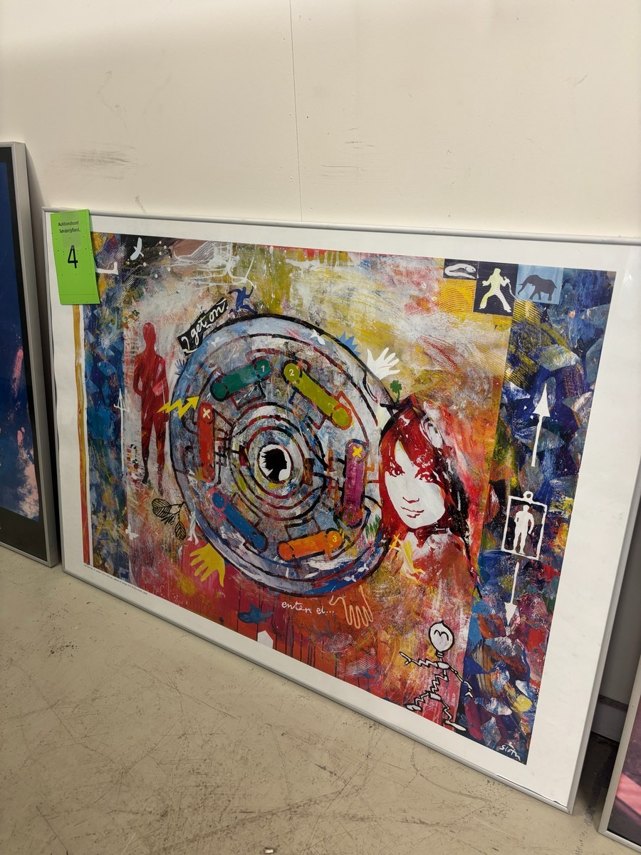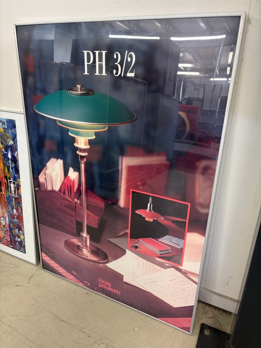 4 stk. indrammede plakater / kunsttryk – herunder PH 3/2 Louis Poulsen. Brugt med brugsspor. Oprydning fra virksomhed