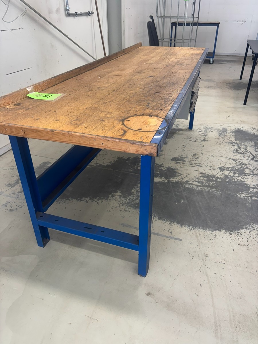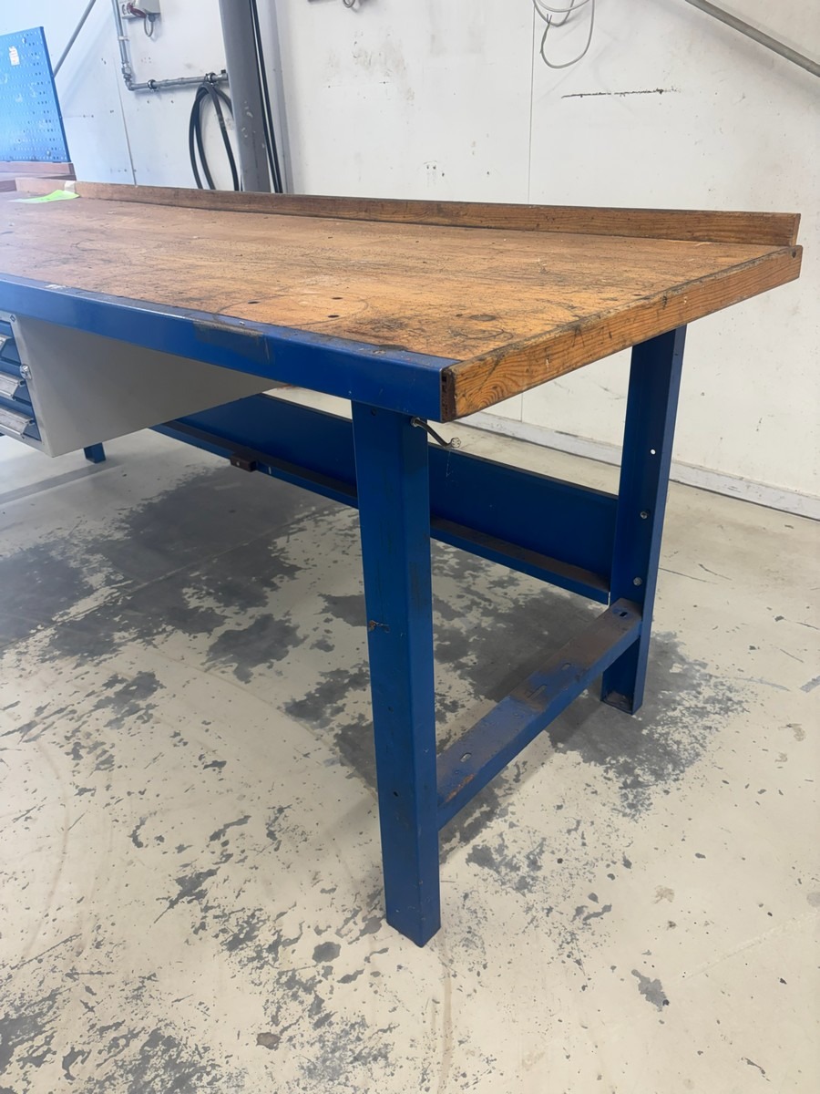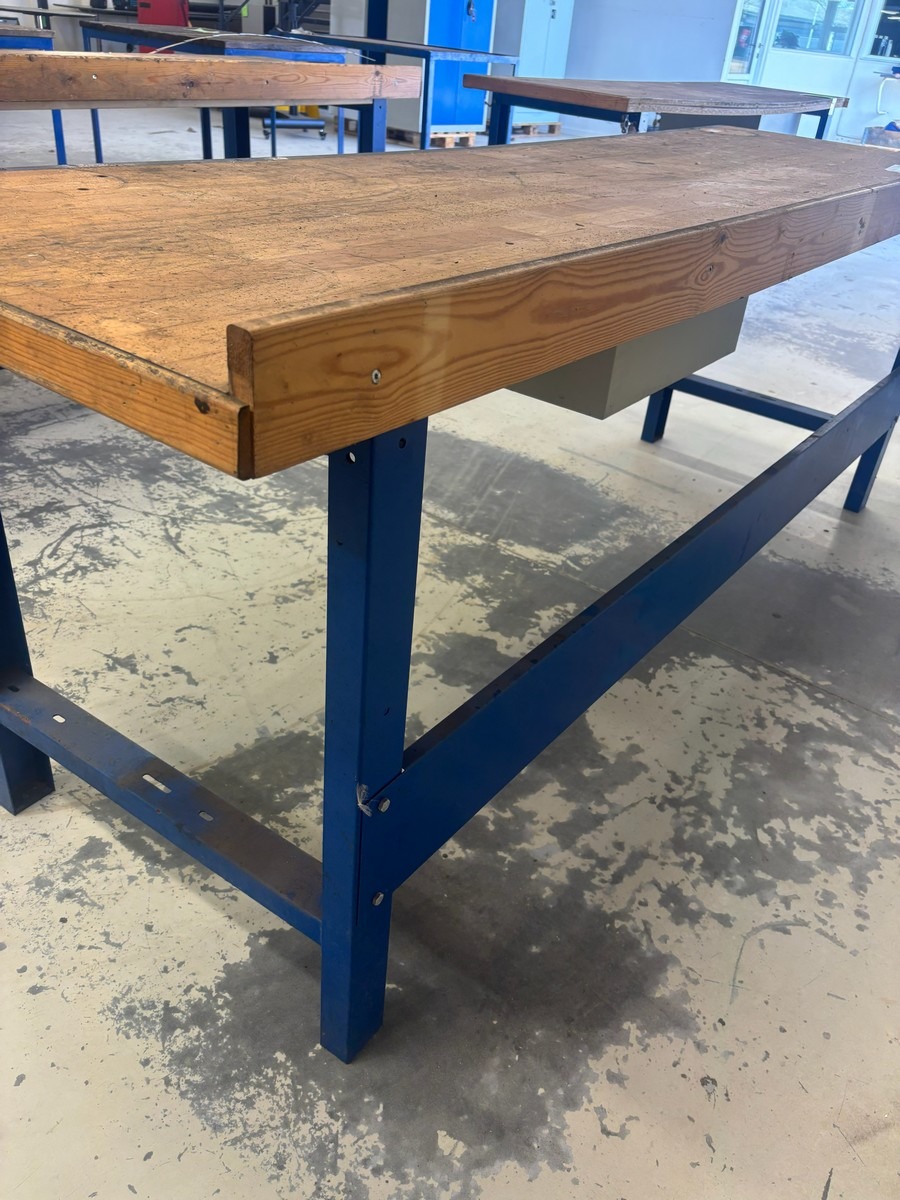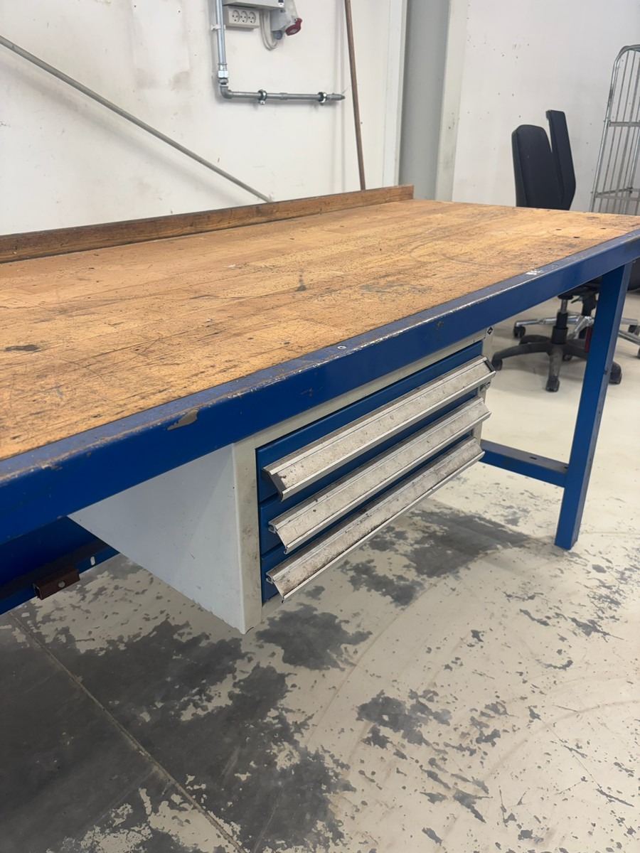 Arbejdsbord / værkstedsbord med skuffemodul. 90 x 75 x 250cm. Brugt med brugsspor. Oprydning fra virksomhed