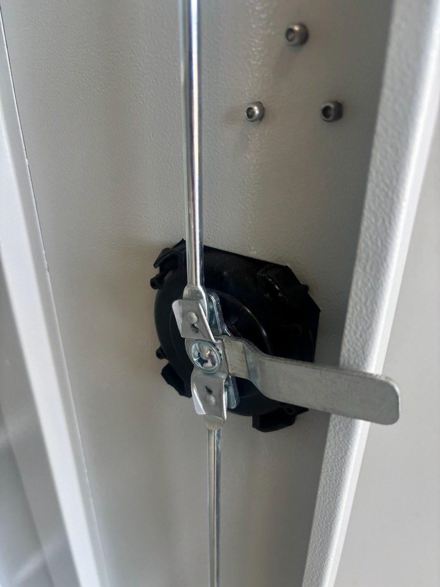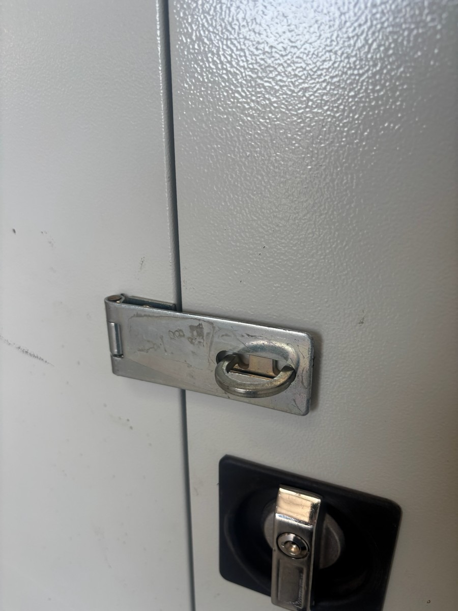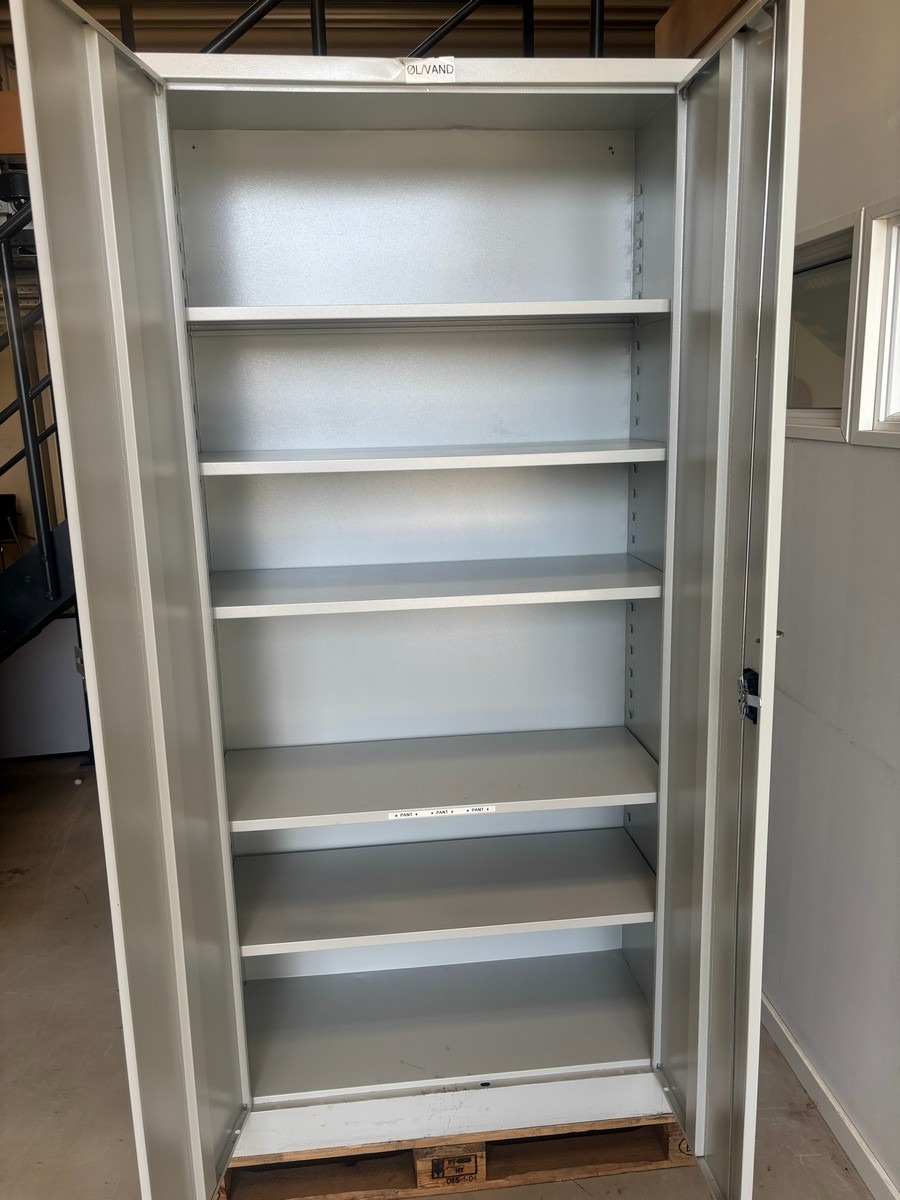 Kraftigt stålskab i lysegrå med dobbeltlåger