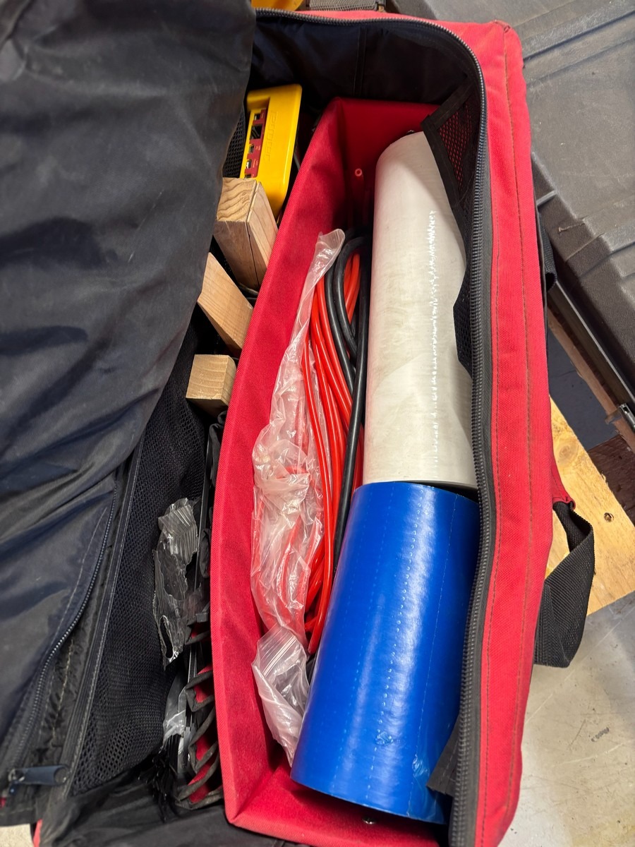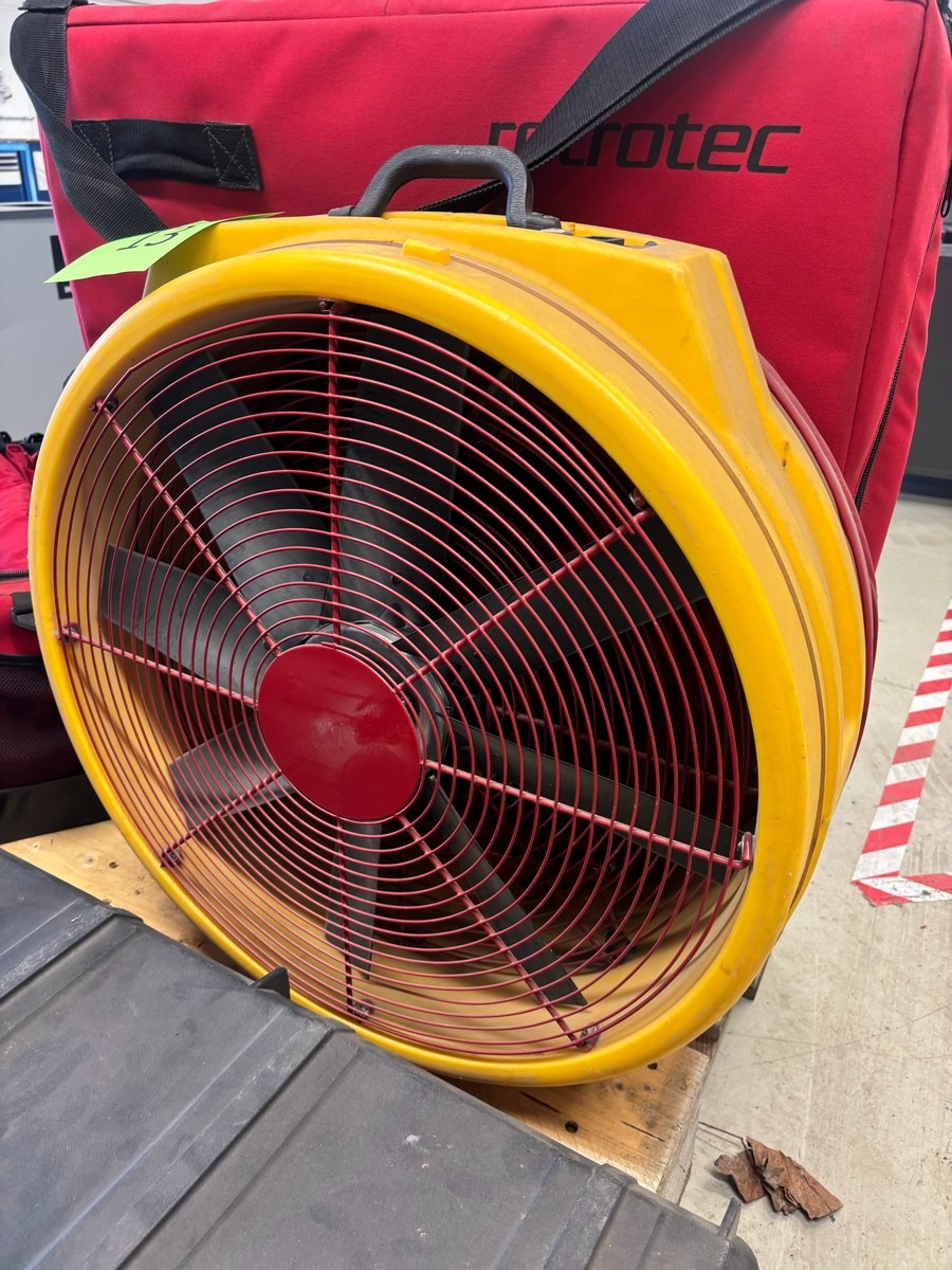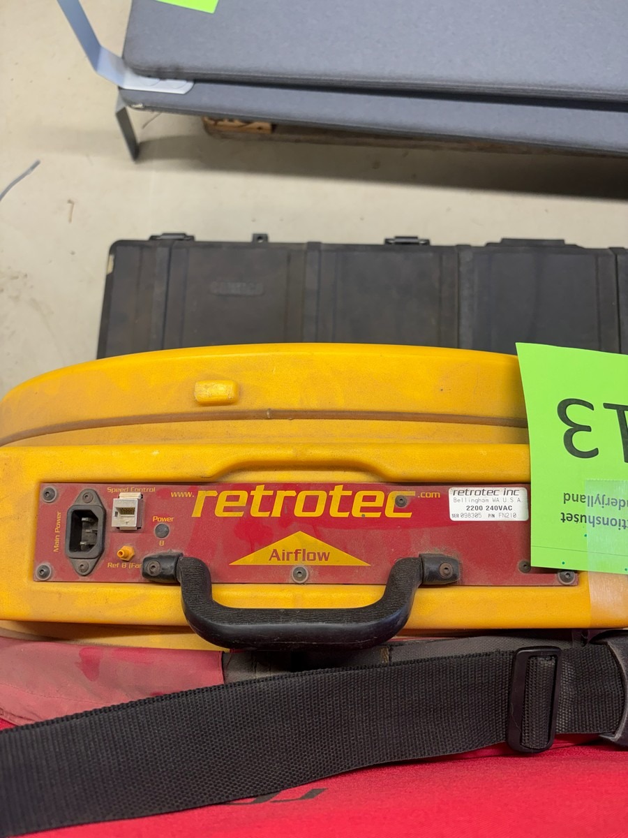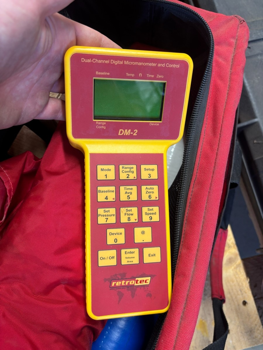 Retrotec blower door sæt inkl. flow rings og transportkasse. Brugt med brugsspor. Oprydning fra virksomhed