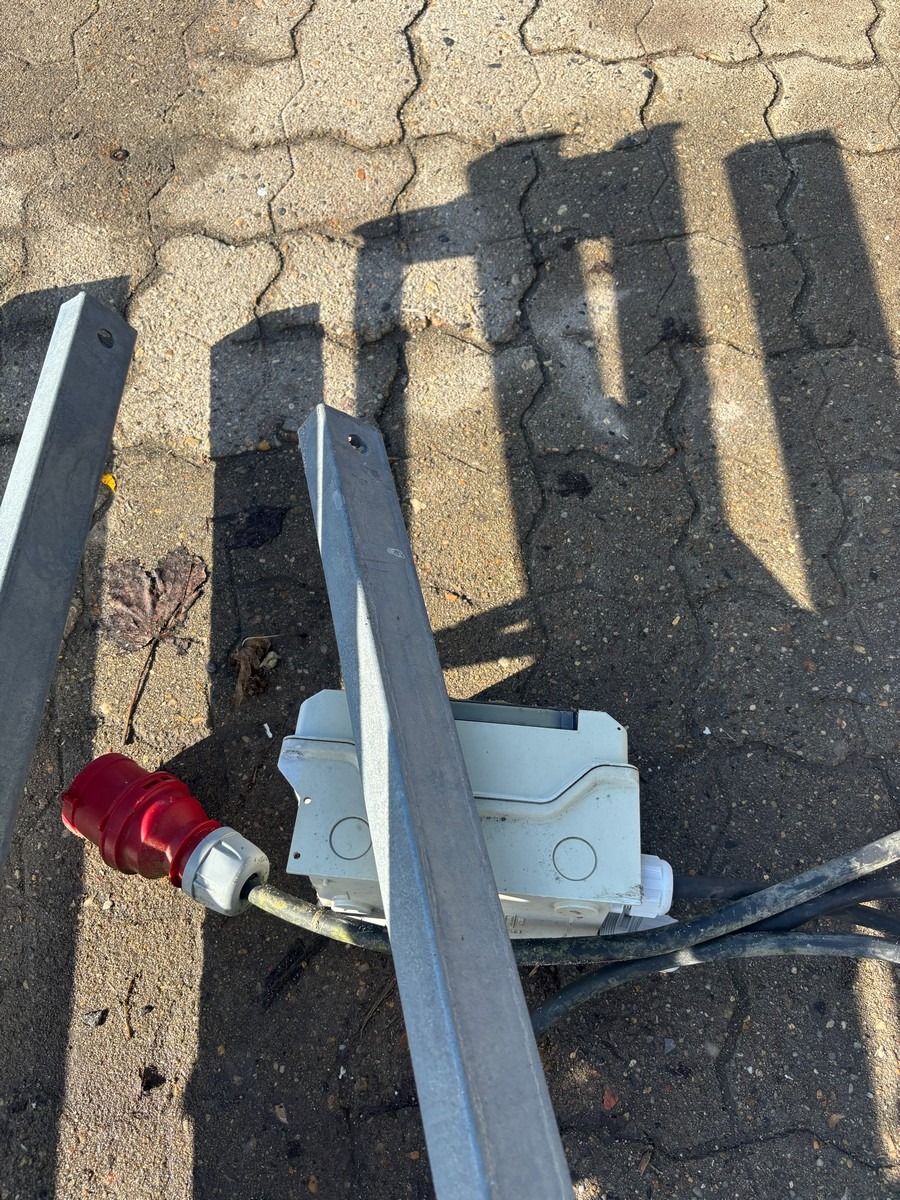 Stort byggeplads/ - arbejdesplads stativ med lamper. Brugt med brugsspor. Oprydning fra virksomhed