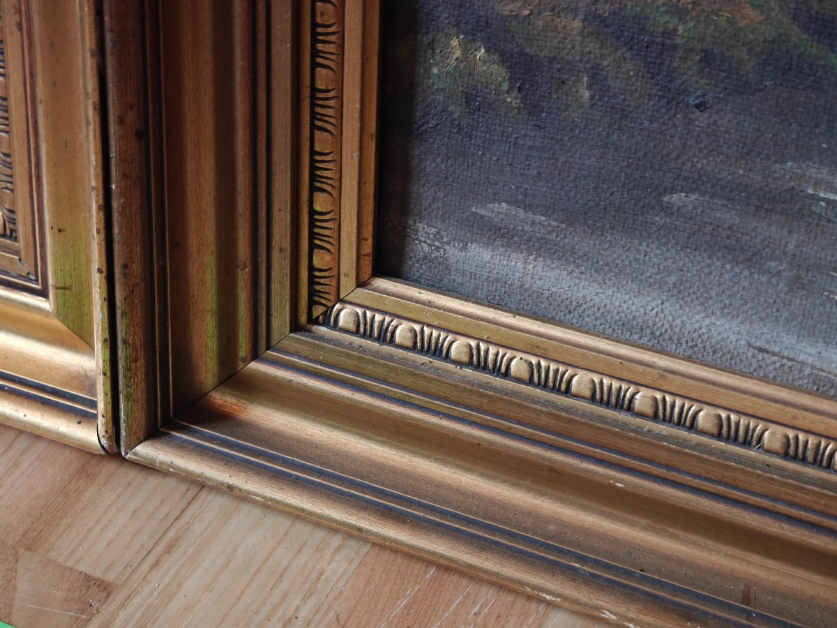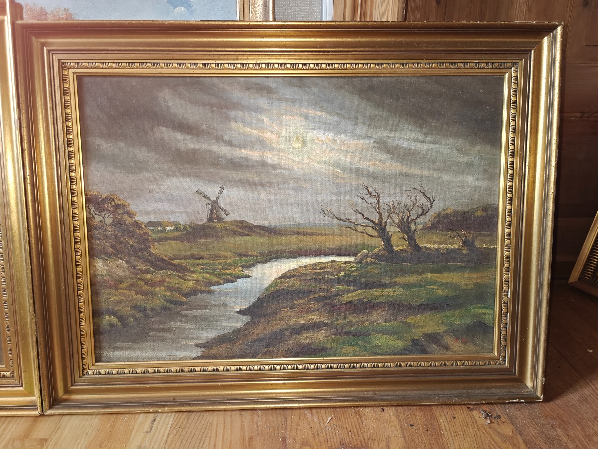 2 Malerier i guldfarvede rammer