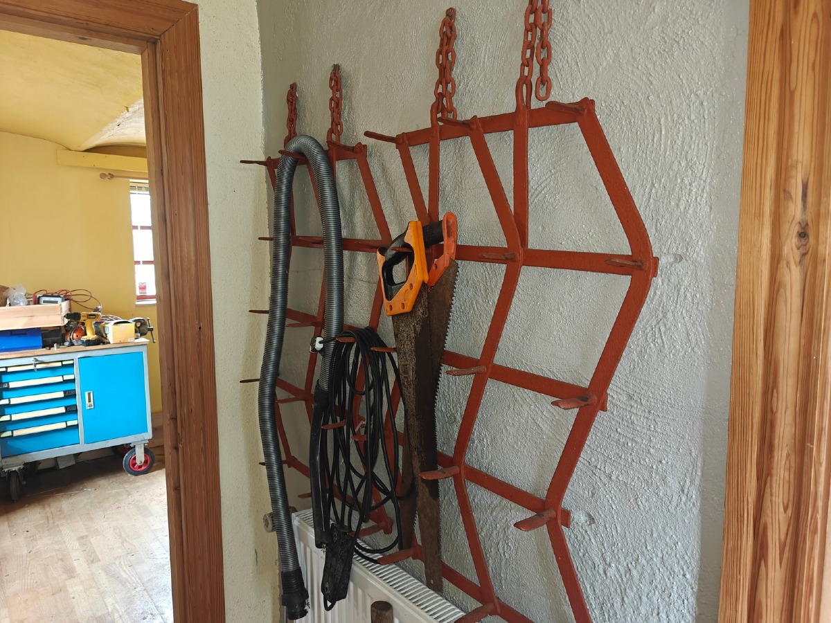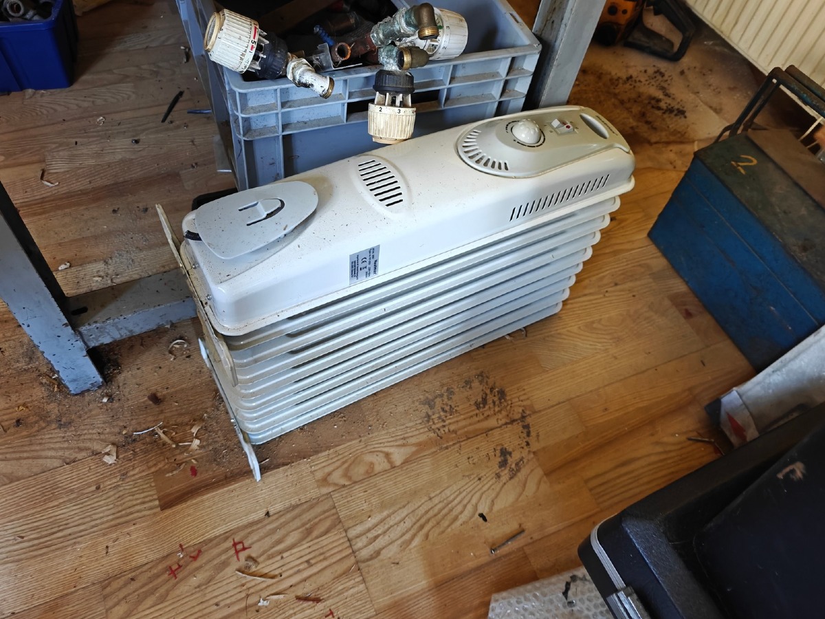 Elradiator, retro radio, piedestal, knager og poster i ramme. Selvnedtagning. Øvrige effekter på fotos medfølger ikke.