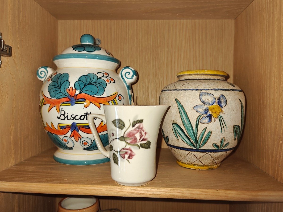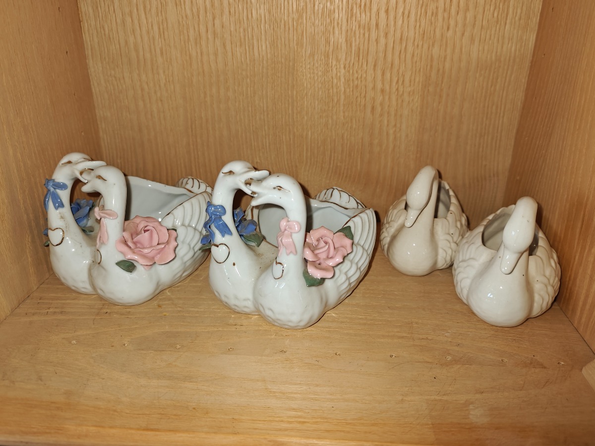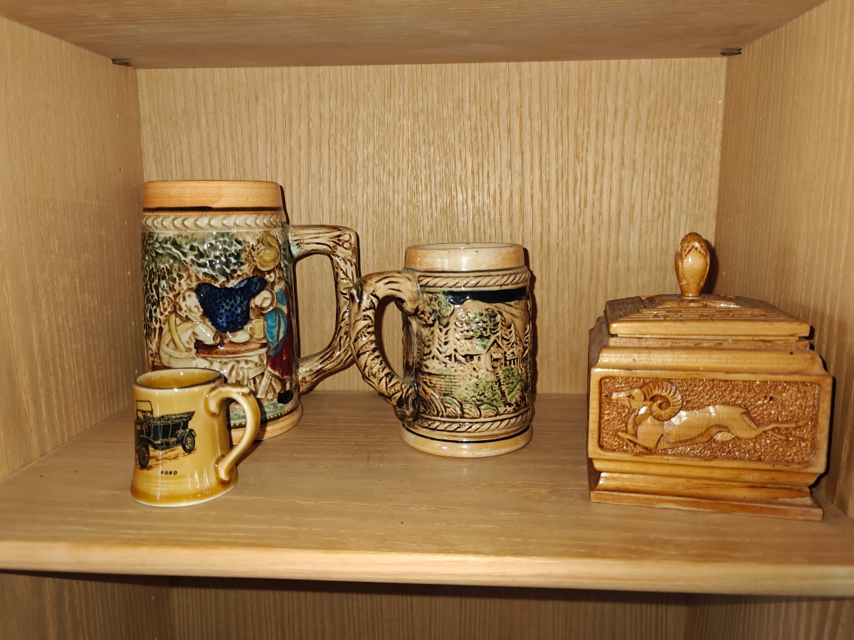 Skab m/indhold. Div figurer bl.a 2 'krymmel'hunde mm. Selvnedtagning.