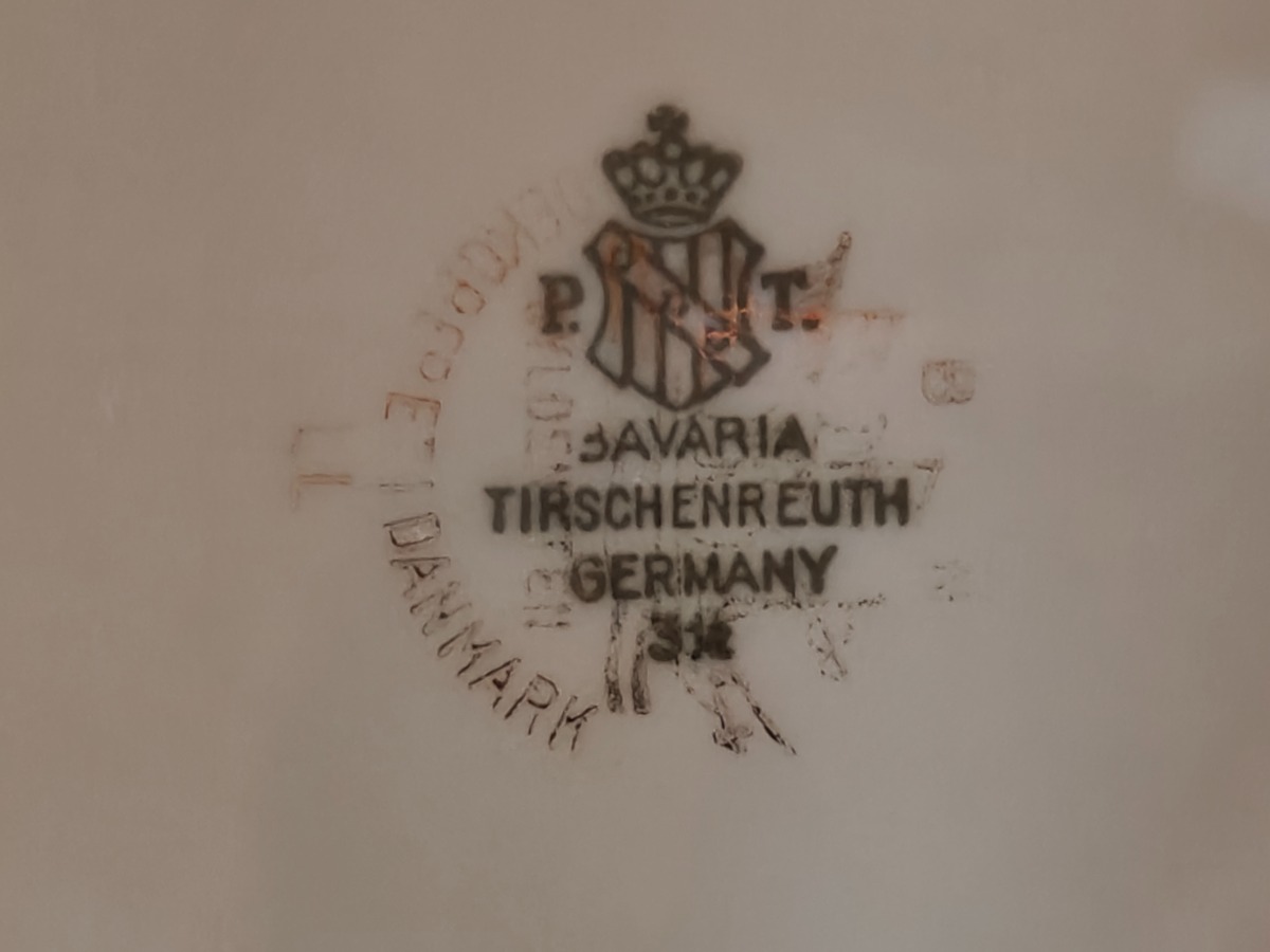 Stel. Mrk: Bavaria Tirschenreuth, Germany. Dekoreret i Danmark. Ca 30 dele.