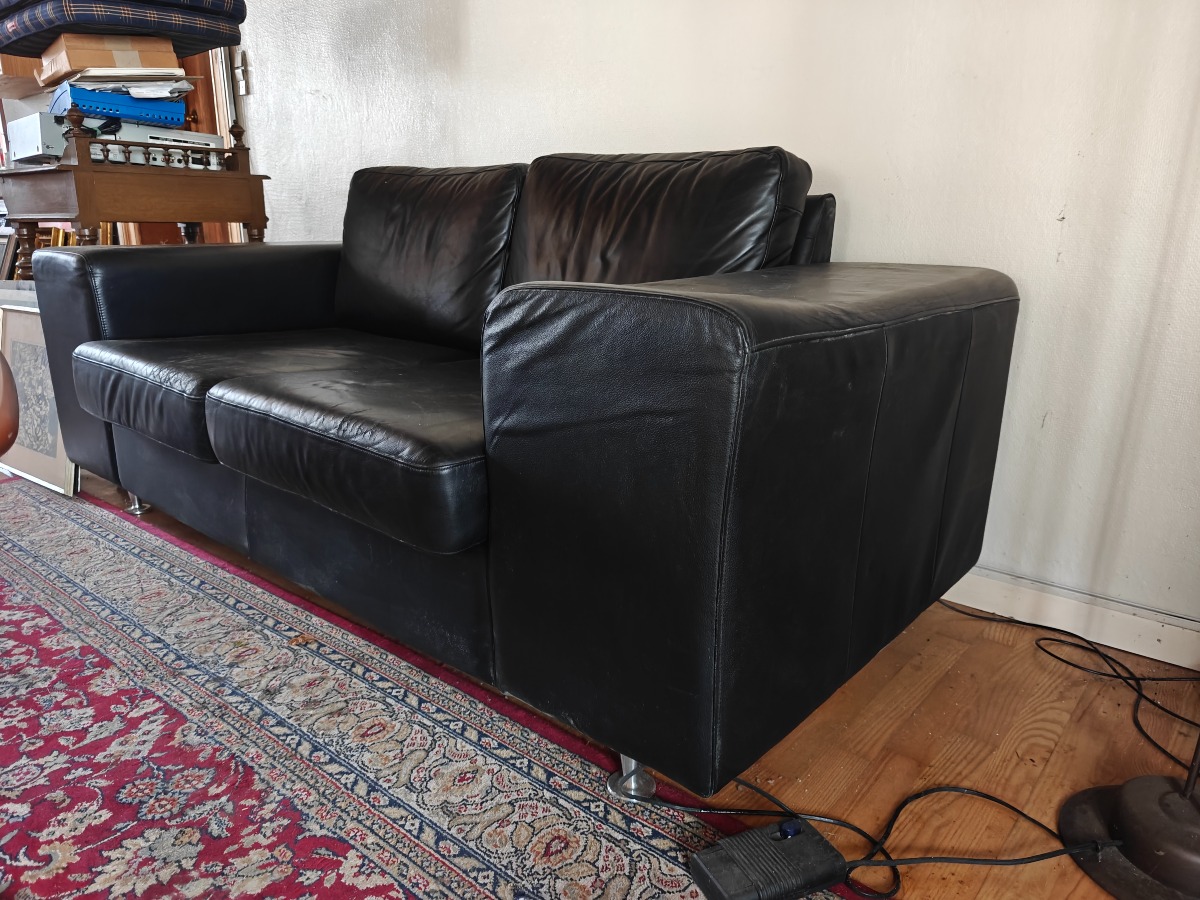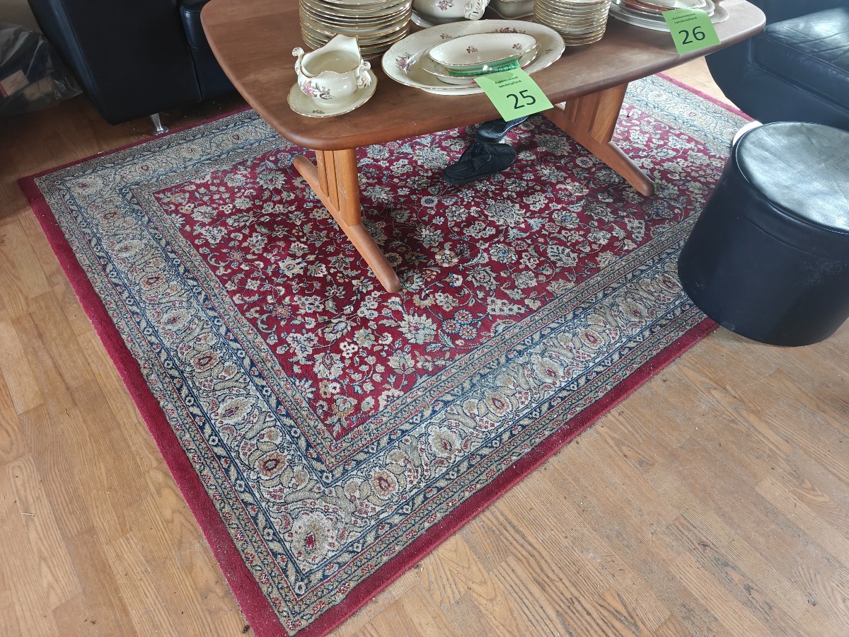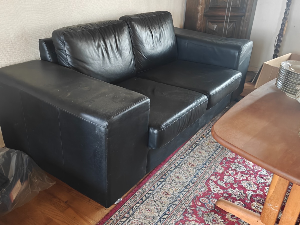 Stol, sofa, puf m/opbevaring, gulvtæppe & sofabord. Sofa er ca 180 cm bred. Brugt med brugsspor. Effekter på bord samt øvrige effekter på fotos medfølger ikke. Står i stueplan.