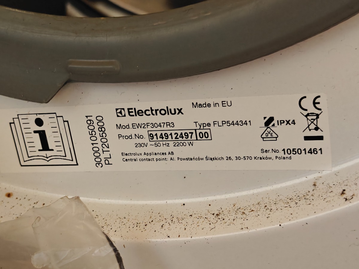 Vaskemaskine. Mrk: Electrolux. Model: EW2F3047R3. Type: FLP544341. Ubrugt.