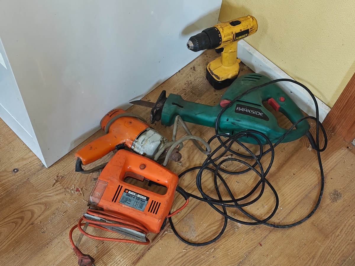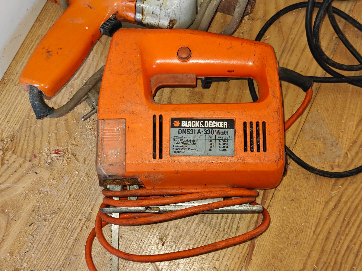 Arkivskab og elværktøj. Arkivskab i stål. Uden indhold. Elværktøj: Mrk: Black & Decker, DeWalt & Parkside. Brugt.