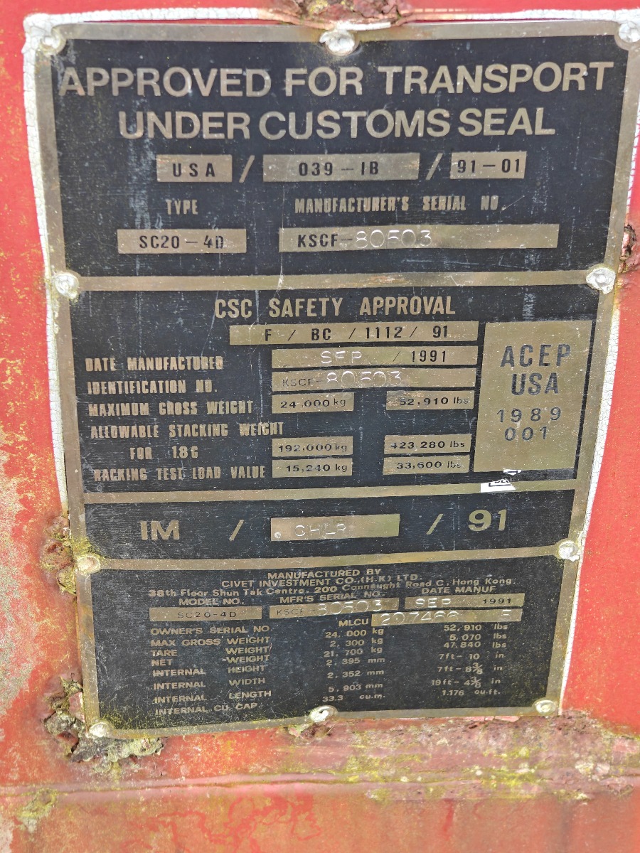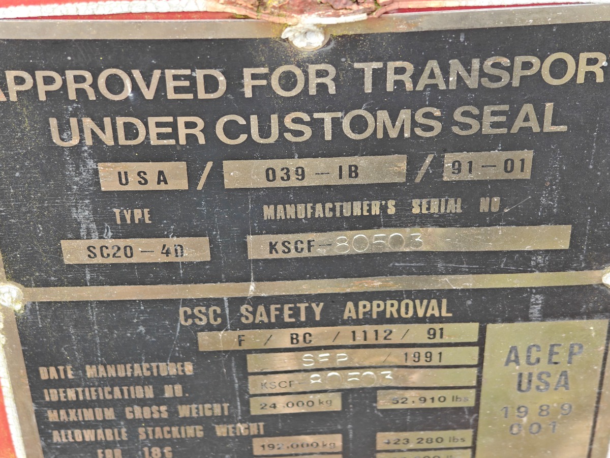 Container. Type: SC20 - 4D. Brugsspor. Ok tilkørselsforhold til pålæsning. Vi opfordrer interesserede bydere til at komme  og bese containeren samt tilkørselsforhold til eftersyn.