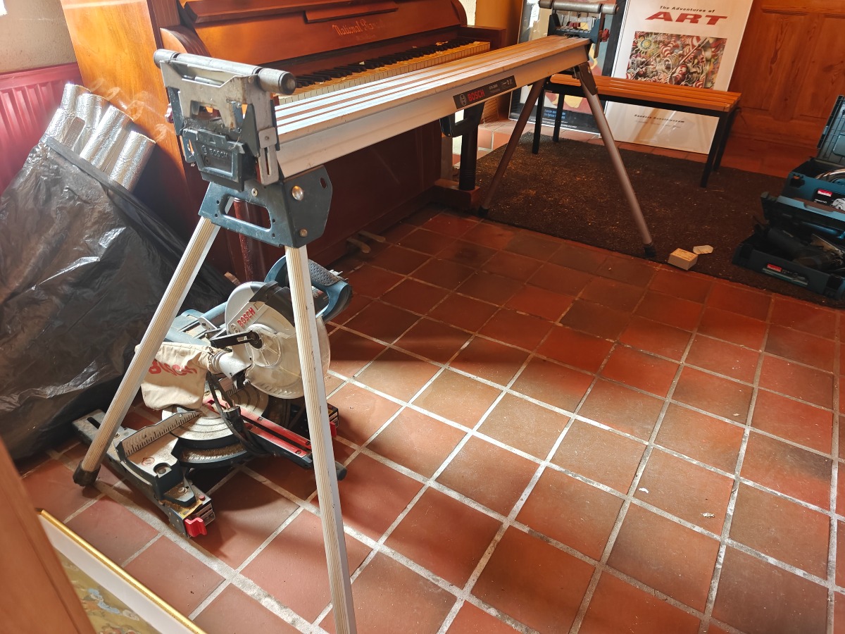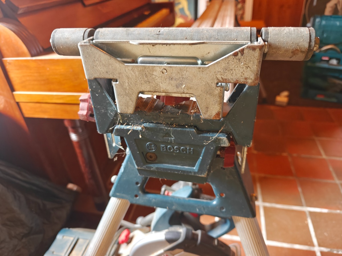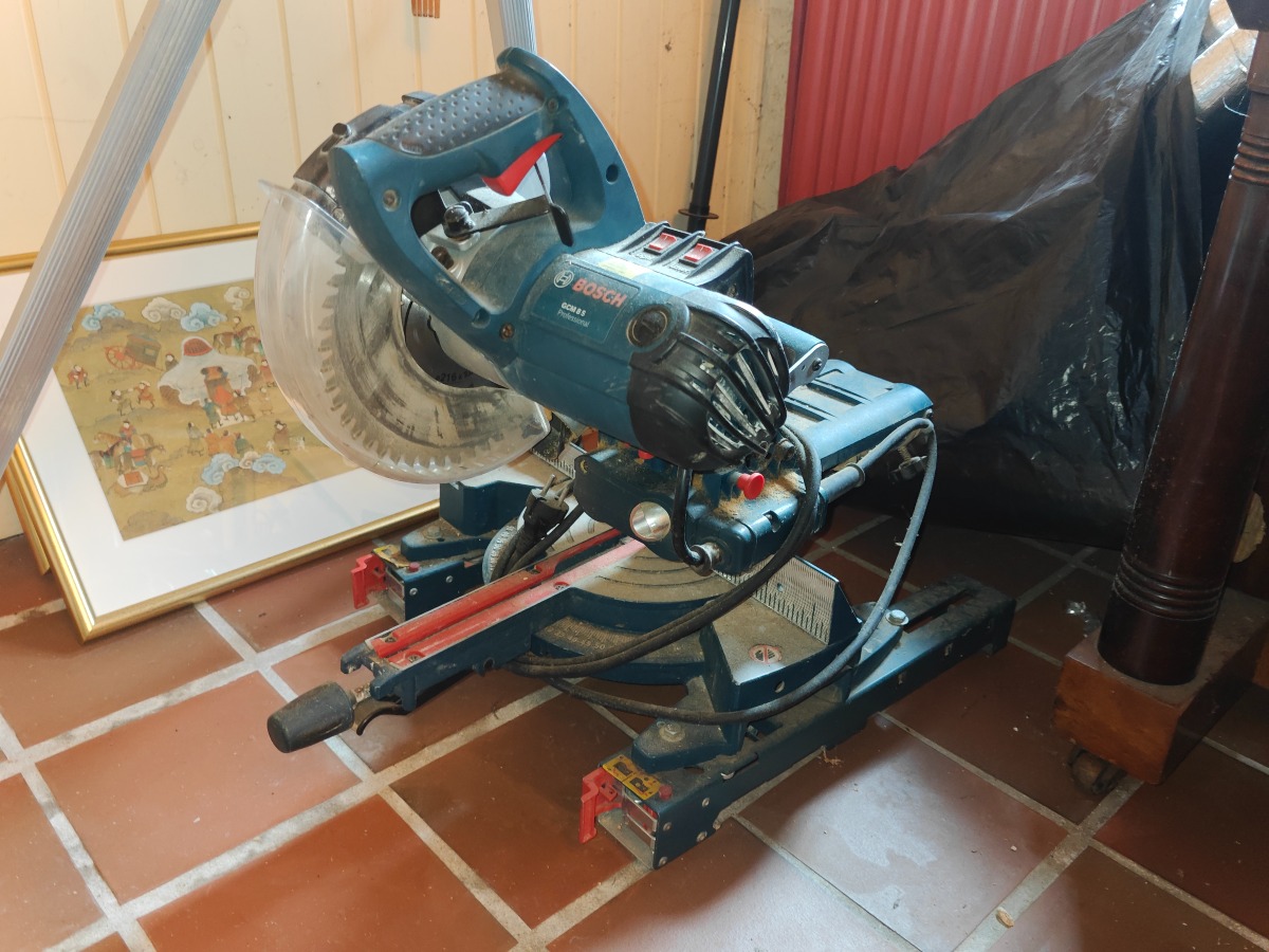 Kap- & geringssav m/bord. Sav: Mrk: Bosch. Model: GCM 8 S Professional. Land: Mrk: Bosch. Model: GTA 3800 Professional. Brugt.
