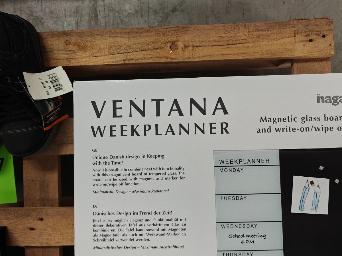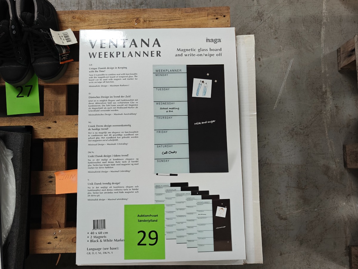 3 stk. magnetiske glastavler med ugeplannere. Mrk Ventana. Mål: 40 x 60 cm. Ubrugte og i emballage.