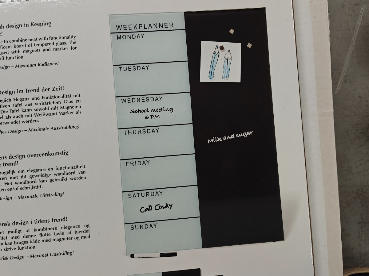 Magnetiske glastavler m/ugeplannere, 3 stk.