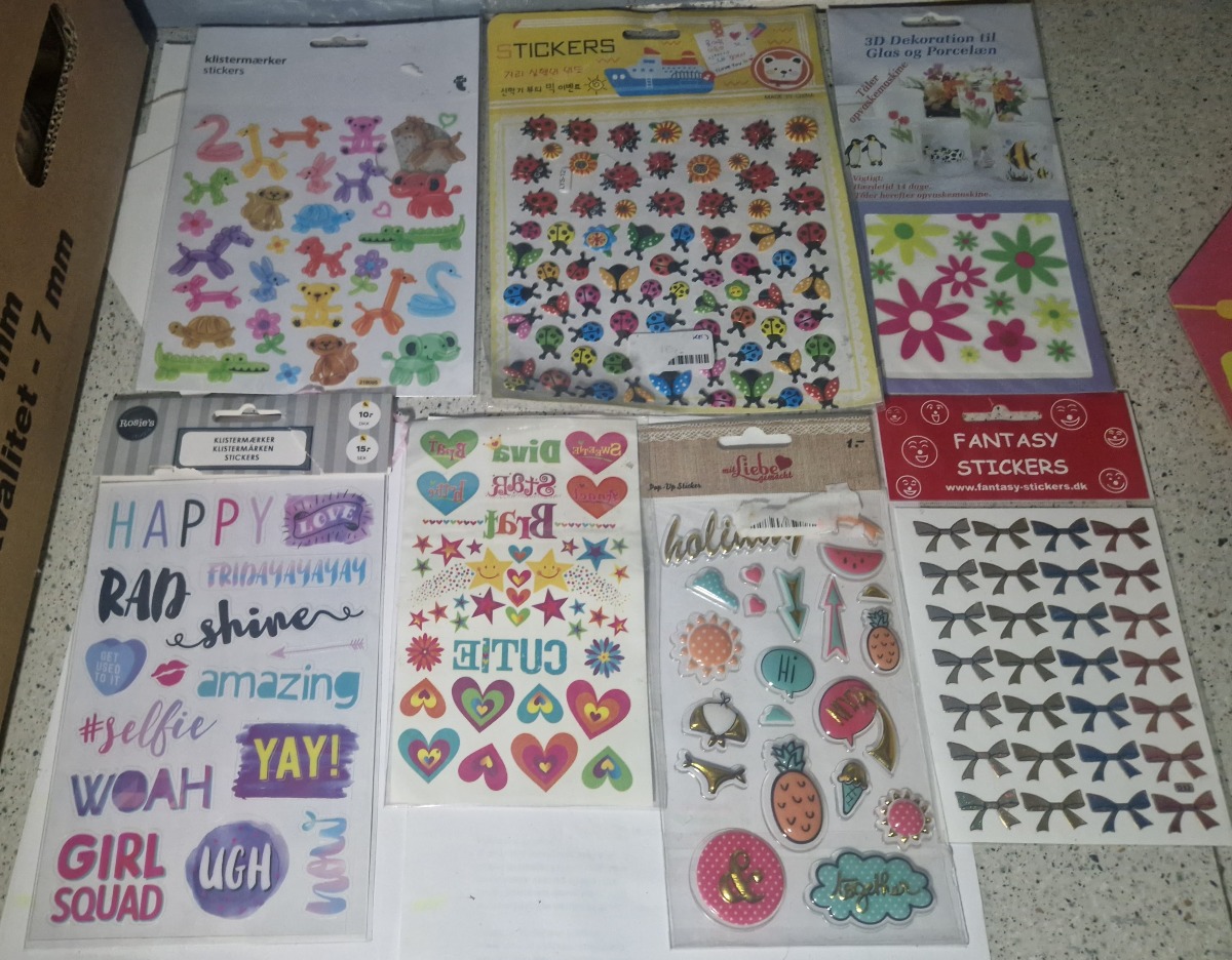 Ca. 300 stk./ark stickers. Ass designs. Ubrugte.
