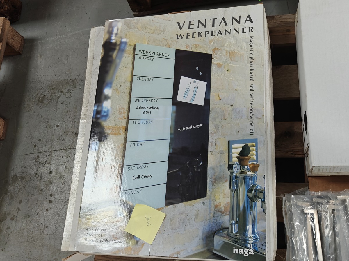 3 stk. magnetiske glastavler med ugeplannere. Mrk Naga Ventana. Mål: 40 x 60 cm. Ubrugte og i emballage.