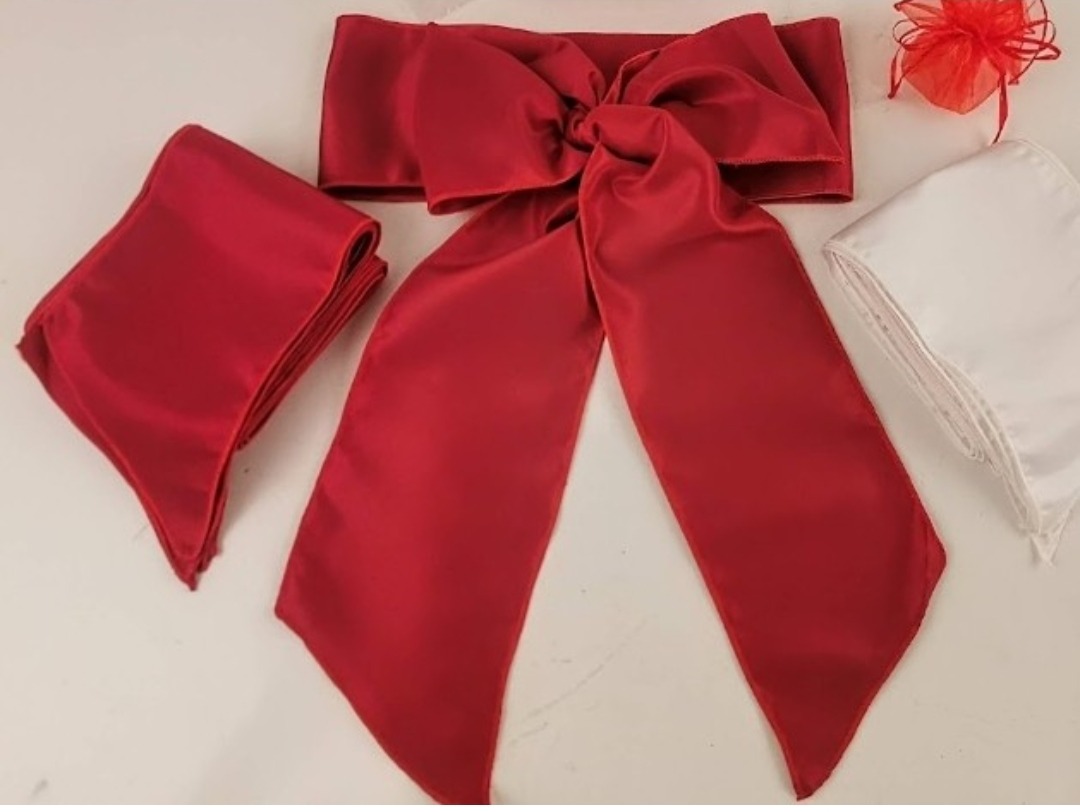 18 Store satinbånd t/fx stolerygge mm. 14 røde, 3 hvide og 1 lilla. Mål: B: 14 cm. L: 260 cm. Ubrugte.