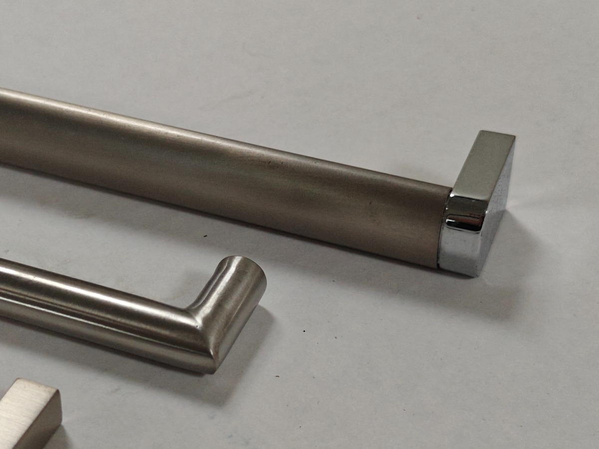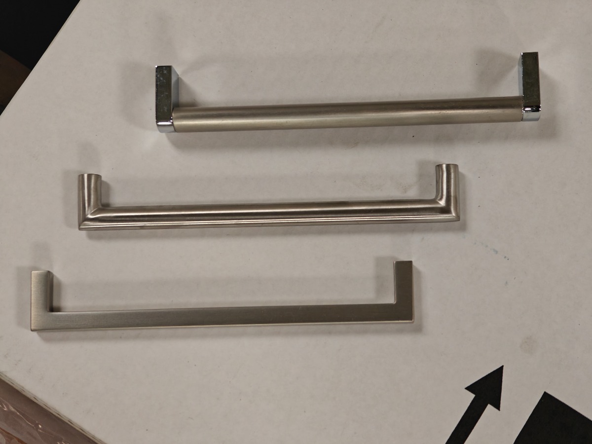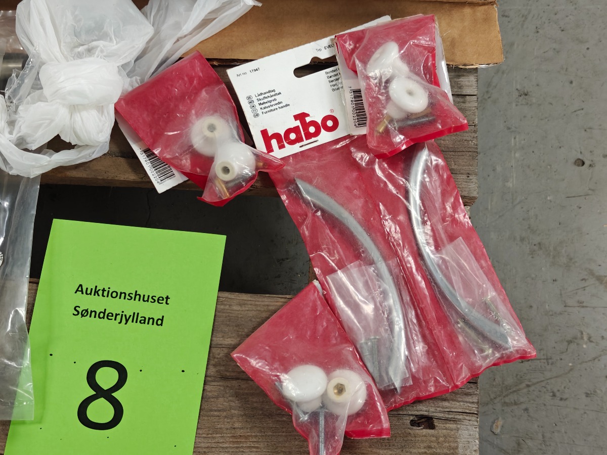 31 Greb t/køkkenlåger. 16 kantede. 9 runde. 4 brede. 2 buede. Samt 6 møbelknopper. Ubrugte og i emballage.