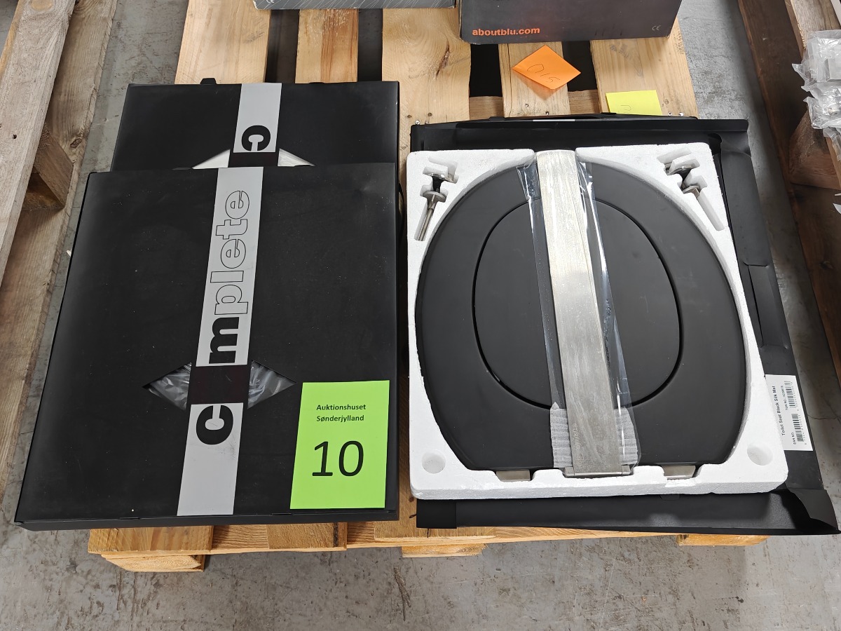 4 Toiletsæder i dansk design. Mrk Complete. 3 stk i sort silkemat og 1 stk i hvid silkemat. Begge med detaljer i børstet stål. Ubrugte og i emballage.