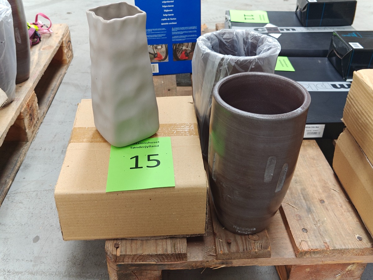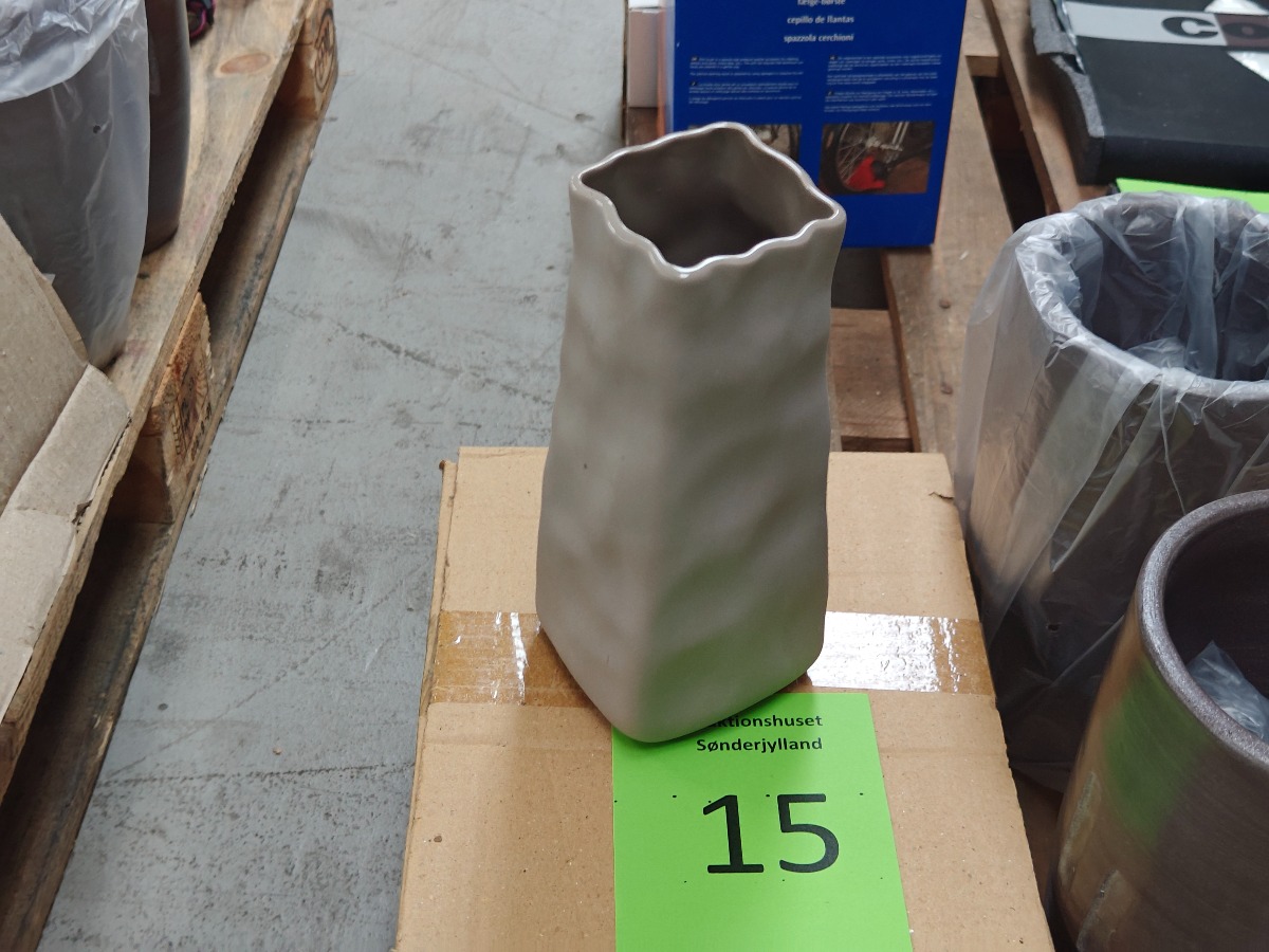 5 Vaser: 2 Store håndlavede vaser. Lavet i Portugal. Bastian Pot -naturprodukt. I brune nuancer. 3 Vaser i lys grå. Ubrugte.