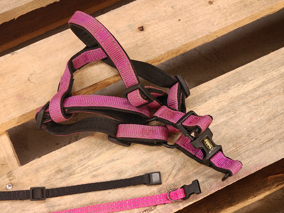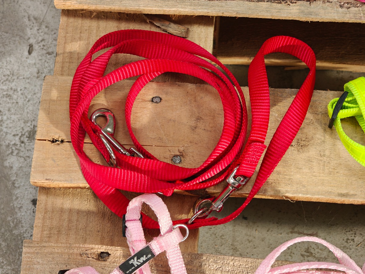 7 Gåseler,halsbånd samt gåliner til hvalpe/små hunde/katte. Mrk: Kw, Nobby m.fl. Ubrugte.