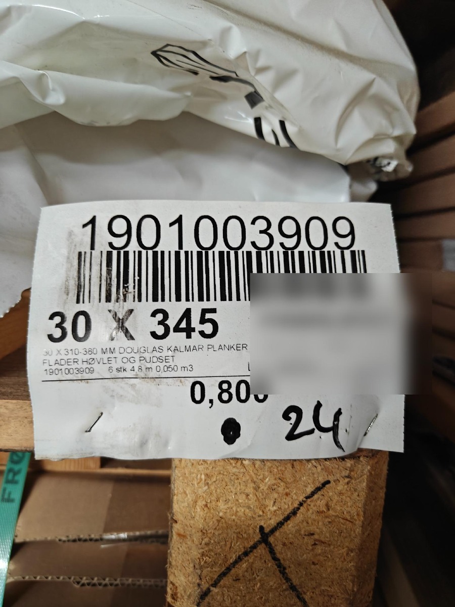 Douglas planker 1 pl. med 36 stk plankerne måler 30 x 350 - 420 mm x 0,8 meter 1 lige kant, høvlet og pudset