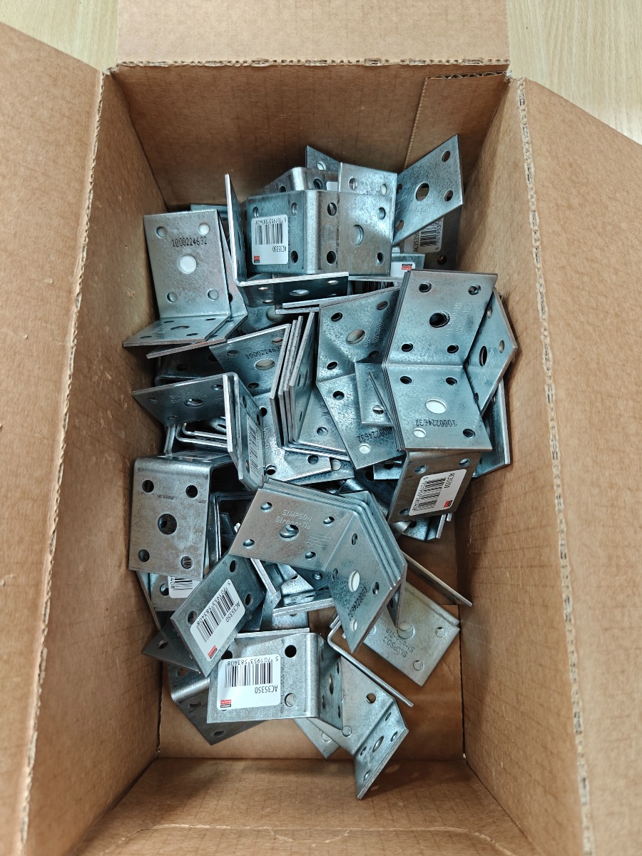 1 ks. med100 stk Simpson Strong -Tie galvaniserede vinkelbeslag, beslagene måler 50 x 50 mm 35 mm bredde