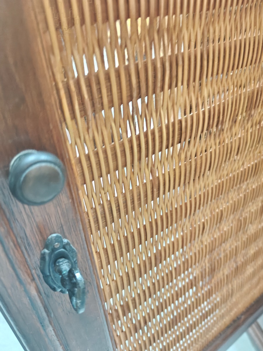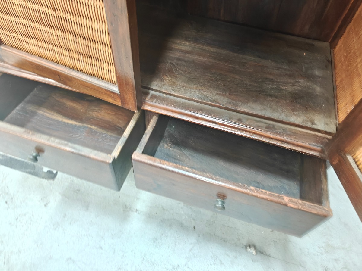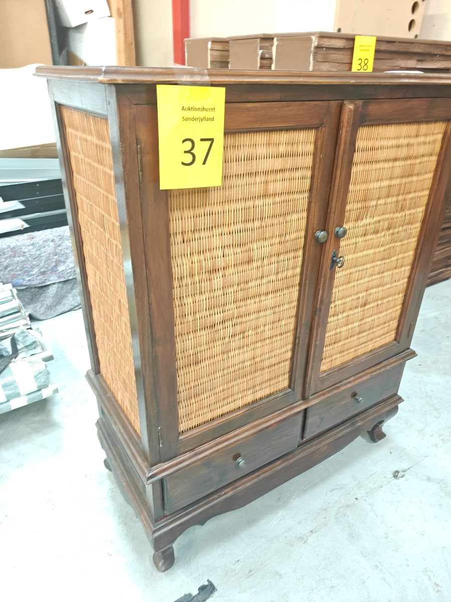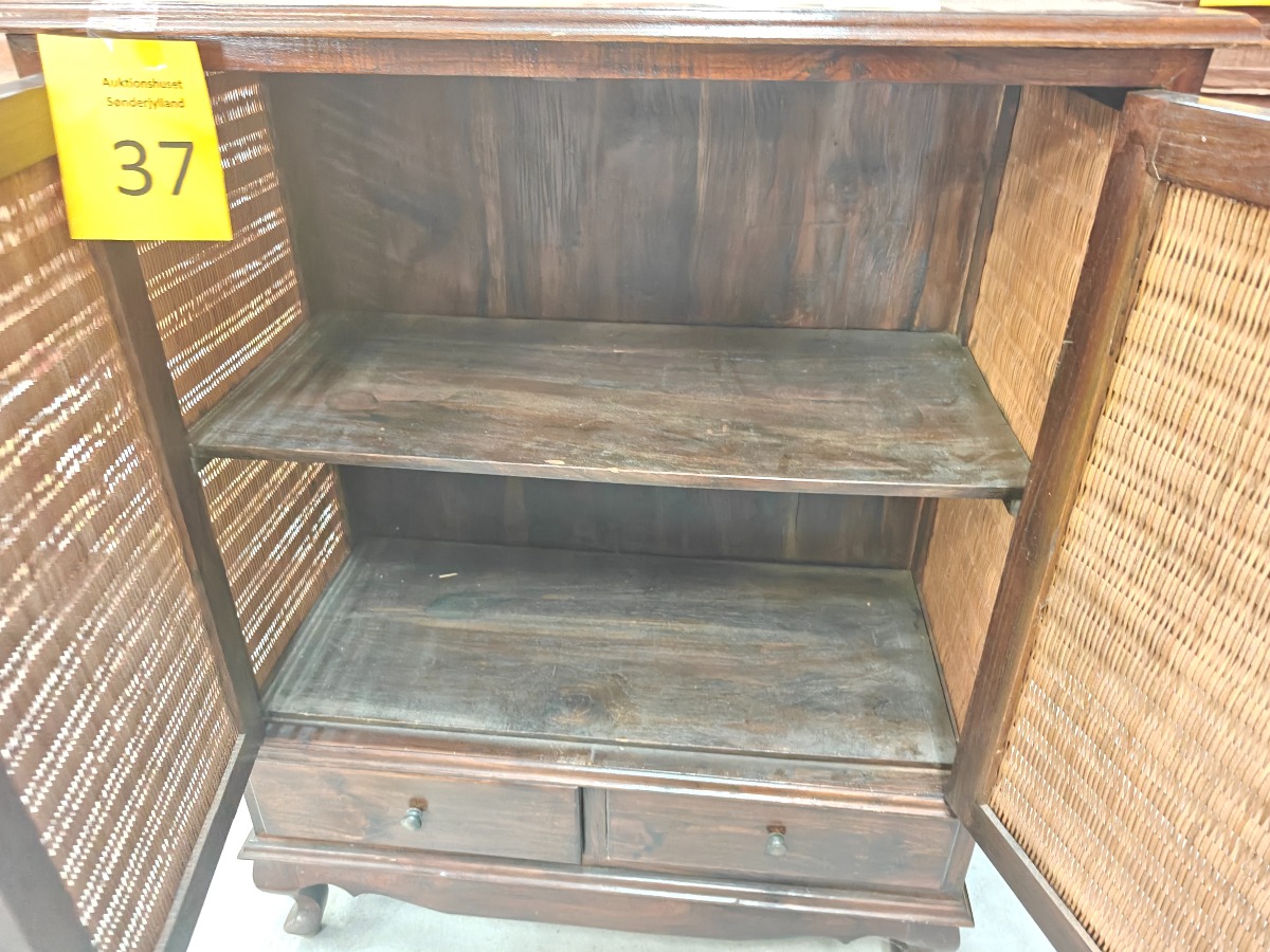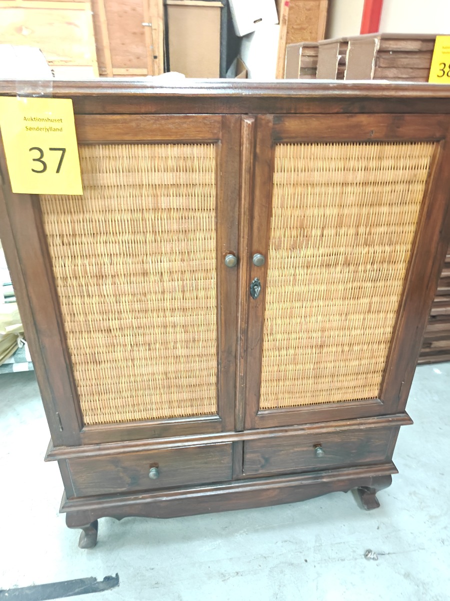 Asiatisk skab. Måler 91 b x 42 d x 114 høj. Slidt på toppen. Med brugsspor