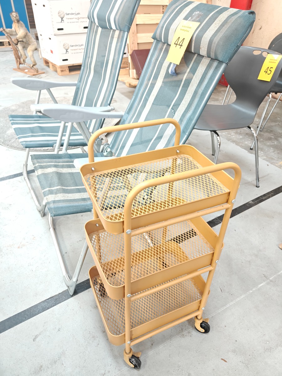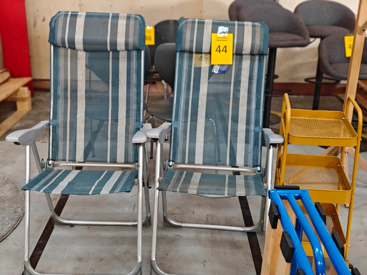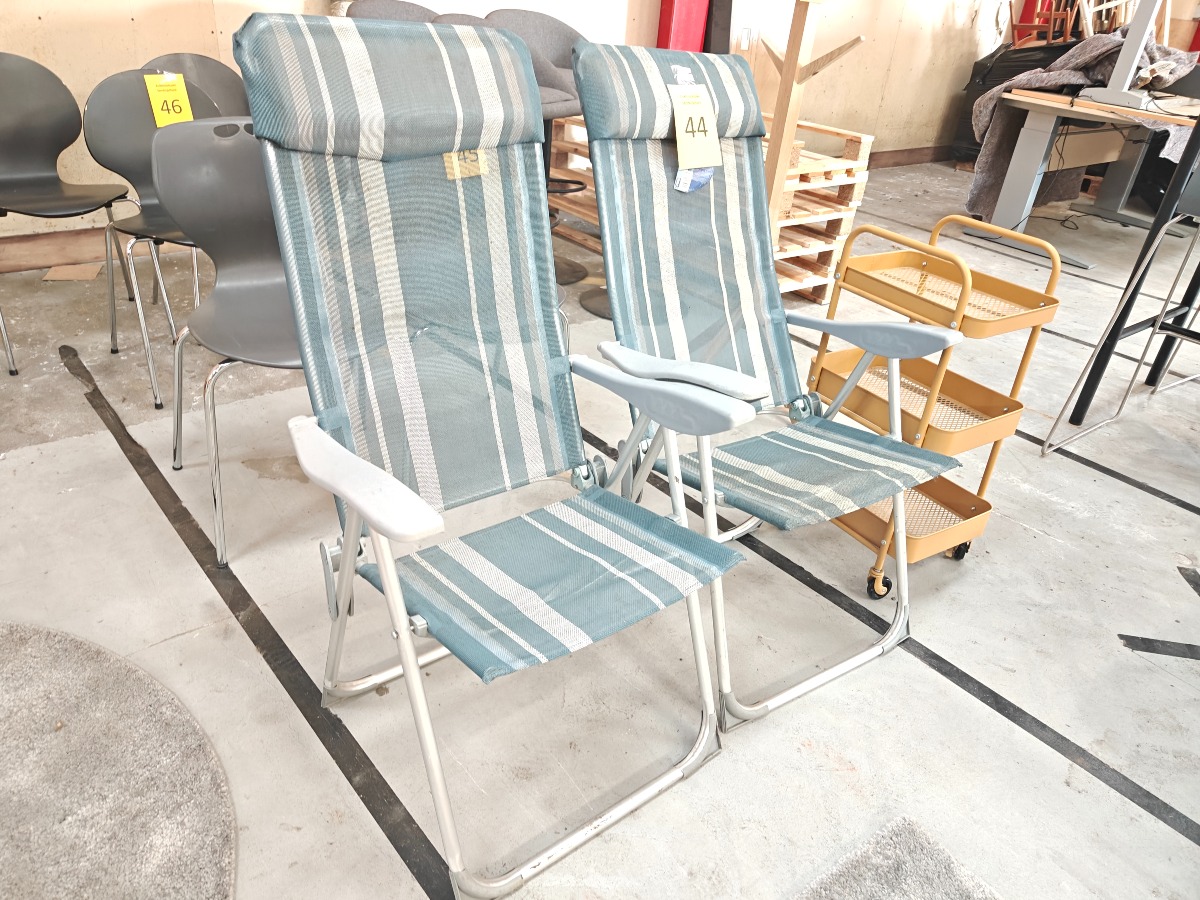 Campingstole med høj ryg, 2 stk samt en serveringsvogn. Med brugsspor