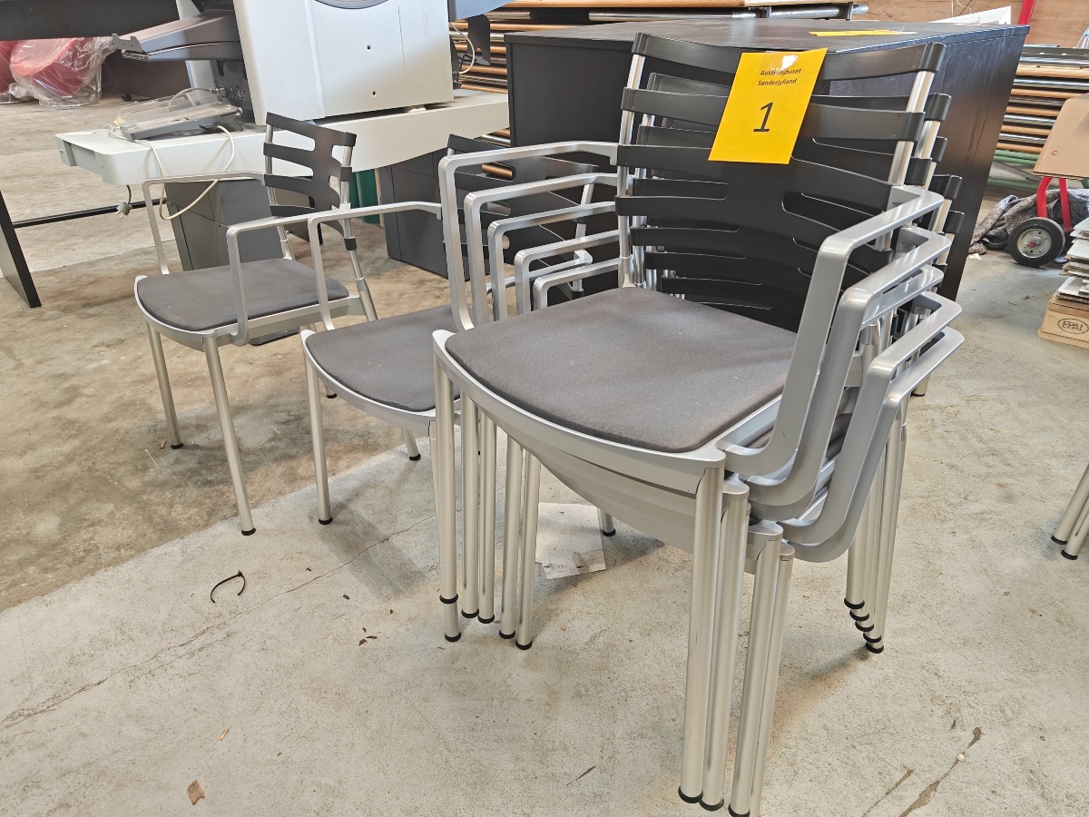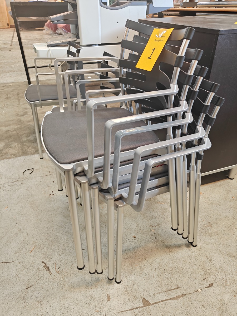 Fritz Hansen ICE stole med armlæn 7 stk. Af Kasper Salto design i sort med sort tekstil betræk. Med brugsspor og enkelte pletter. Brugte