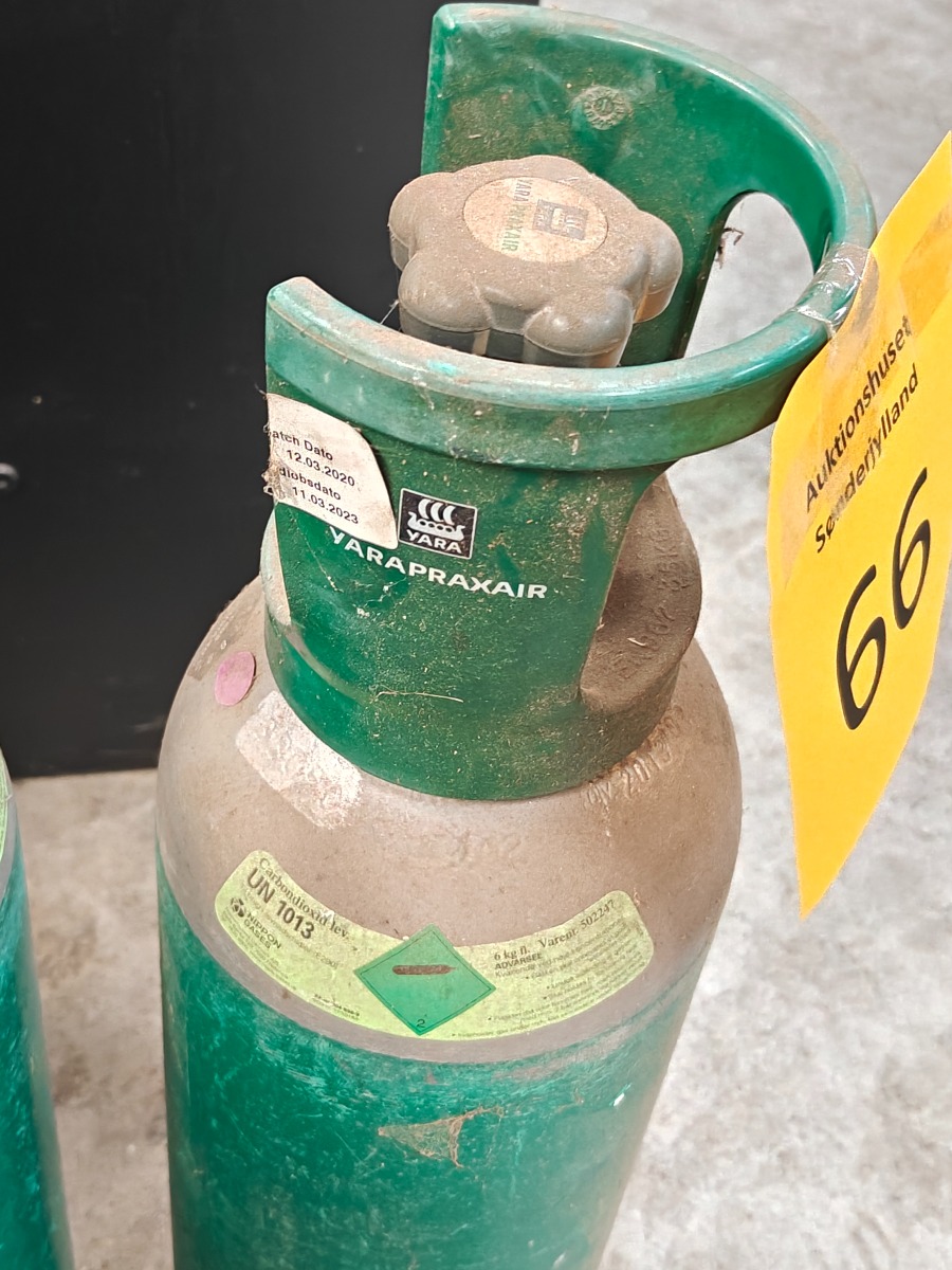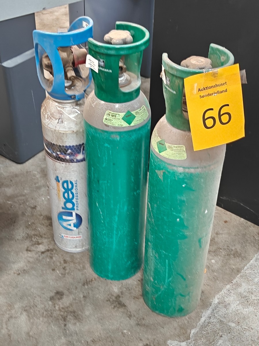 Gasflasker, 3 stk. Indholds mængde ukendt. Brugt