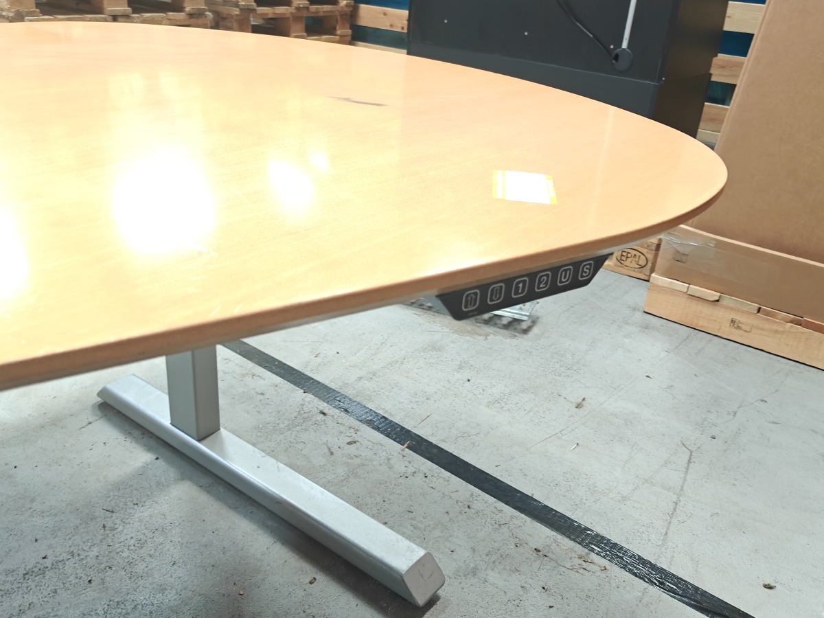 Hæve/sænke skrivebord. Måler 120 x 2 M bred. Med brugsspor